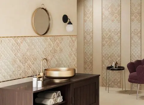 کاشی حمام کرم طلایی با ظاهری بی نظیر و جذاب توجه هر فردی را به خود جلب می کند و این کاشی از شکلی خاص برخوردار است که به ترکیبی از طرح های گیاهی و ریزه کاری هنری تبدیل شده و اندوده ای ویژه و زیبایی به حمام شما می بخشد.