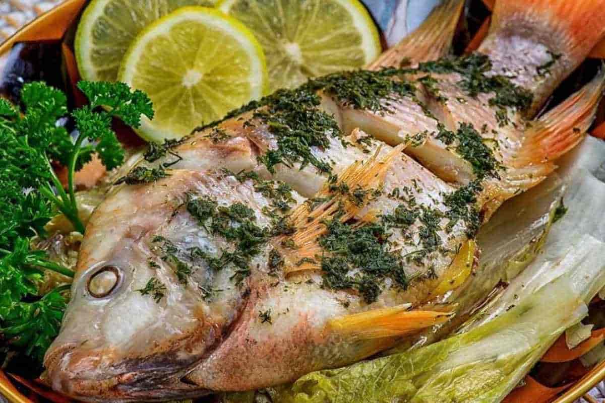 خوراک ماهی تیلاپیا با سبزیجات ریز