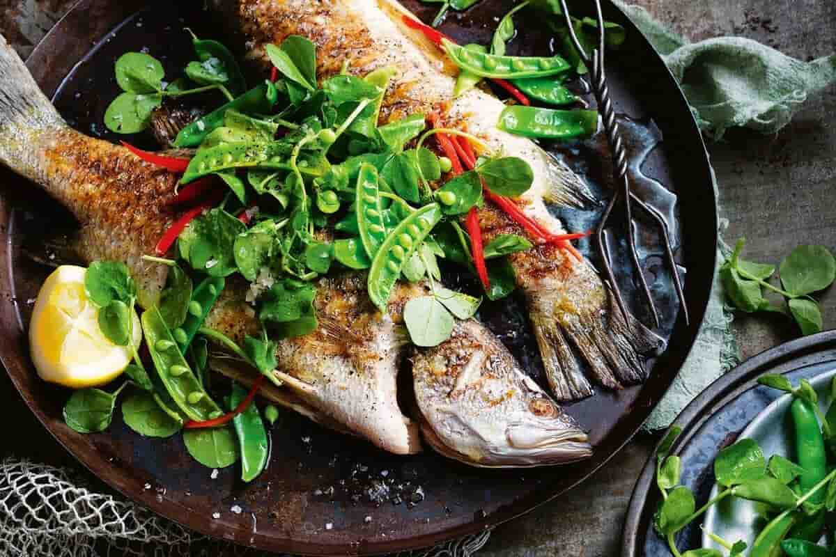 خوراک ماهی تیلاپیا با سبزیجات ریز