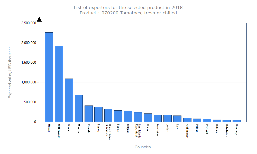 آمار صادرات گوجه فرنگی هدف شناسایی رقبا در بازار جهانی است.