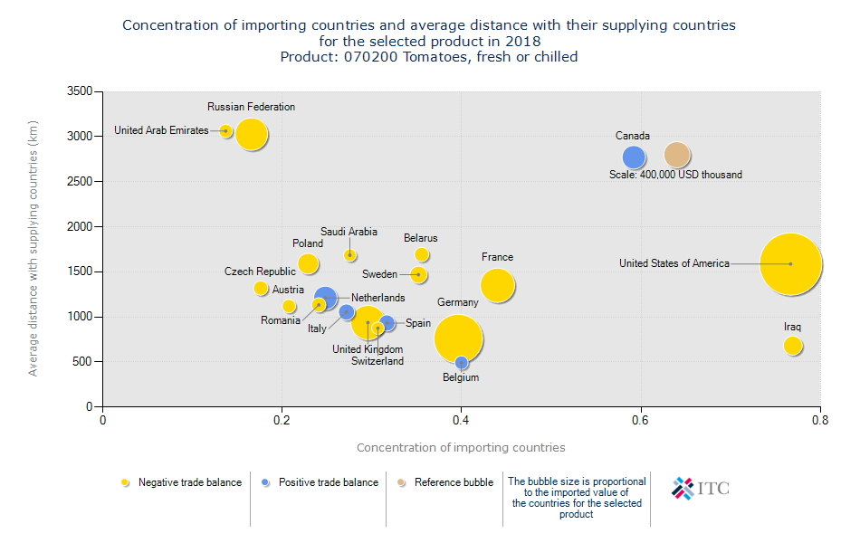 میانگین فاصله از کشور وارد کننده: ۱,۳۰۷ KM آمار واردات گوجه فرنگی هدف شناخت متقاضیان و پتانسیل ها در بازار جهانی است.
