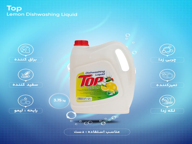 مایع ظرفشویی تاپ 4 لیتری، توسط معتبرترین برند تولید شده و با کیفیت بسیار خوب و درصد غلظت بالا در اختیار مشتریان قرار خواهد گرفت.