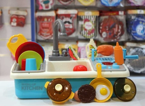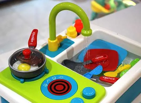 سینک ظرفشویی اسباب بازی و ماشین ظرفشویی اسباب بازی نمونه ای از این محصولات است که با سایزهای مختلف و با کاربردهای متنوع تولید می شود این نمونه از اسباب بازی را می توان در مدل های معمولی و یا برقی در بازار پیدا کرد.