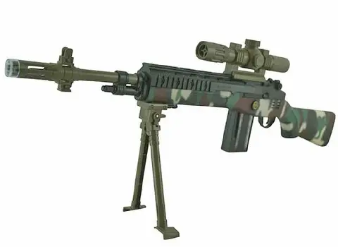 این تفنگ بر روی دو پایه قرار میگیرد که حس واقعی بودن و قوی شدن به کودک می دهد و موجب جذابتر شدن اسباب بازی می شود.