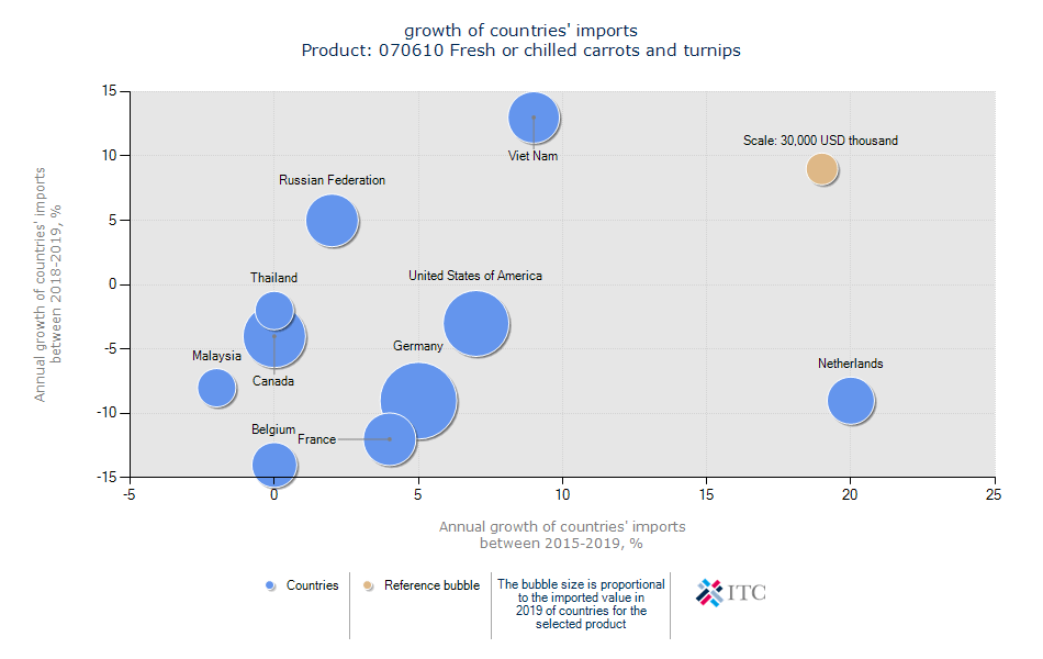 ویتنام و روسیه هم رشد مثبت یک ساله و هم پنج ساله داشته اند. هلند، آمریکا، آلمان و فرانسه دارای بازار رو به رشد در پنج سال اخیر بوده اند.
