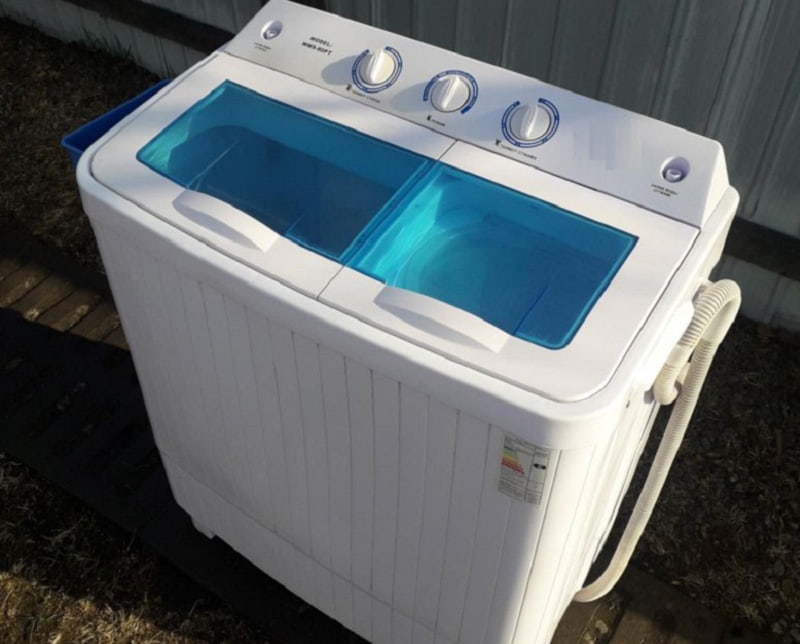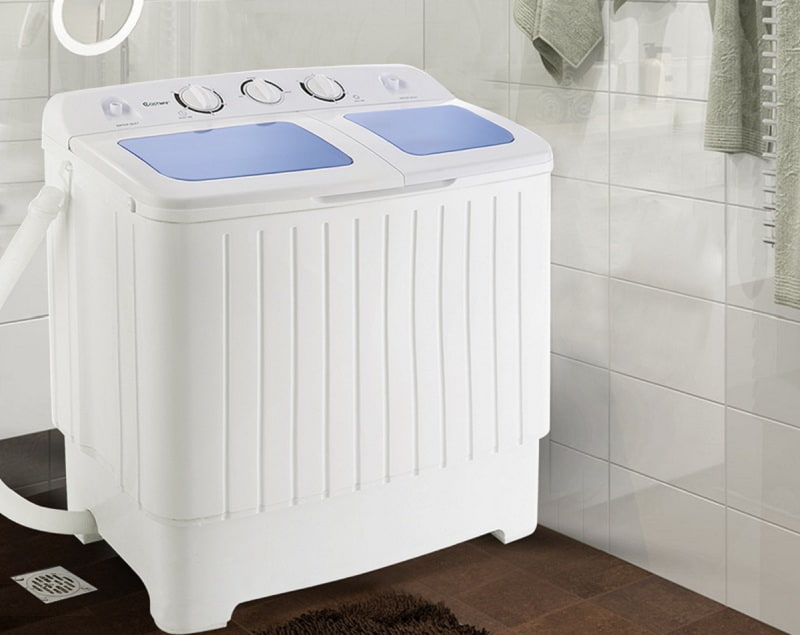 ماشین لباسشویی دو قلو یک وسیله شستشو خانگی با حجم 9 کیلوگرم است که بسیار کمجا بوده و مصرف انرژی کمی دارد که در رده اقتصادی قرار می گیرد که بدنه آن از جنس پلاستیک بوده و در داخل آن از استیل ضد زنگ تولید می شود که می تواند وزن کمی داشته باشد که معمولا به رنگ سفید هستند و درب ان از بالا باز می شود که با دارا بودن شیلنگ خرطومی تخلیه می تواند آب مخزن را بعد از شستشو خالی نماید. موتور بکار رفته در این دستگاه بخوبی سیم پیچی شده و نصب به رطوبت عایقکاری شده است که تا رطوبت به آن وارد نشود.