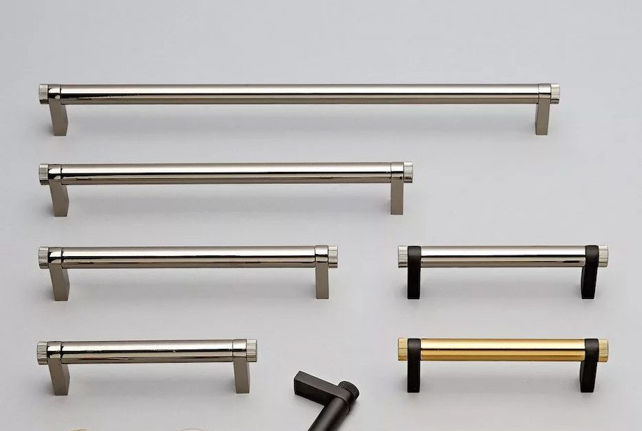 دستگیره کابینت خطی . از دستگیره خطی در بیشتر کابینت ها استفاده میشود ودر کنار دستگیره دکمهای ظاهری زیبا به کابینت ها میدهد معمولا دستگیره خطی در مدل و طرح های مختلف تولید و هر فرد میتواند با توجه به سایز کابینت و دکوراسیون خانه یکی را انتخاب کند دستگیره خطی معمولا با دو پیچ به درب کابینت یا کشوها نصب میشود و به خاطر همین ویژگی در هنگام باز و بسته کردن درب کابینت فشار کمتری به آنها وارد میشود.