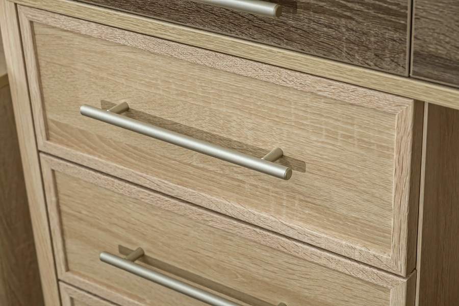 درست است که مدل و طرح کابینت ام دی اف در انتخابات دستگیره بسیار مهم است ولی همیشه به محل نصب آن نیز دقت کنید بعضی از افراد ترجیح میدهند از این نوع دستگیره بروی کشوها استفاده کنند ولی همیشه برای کشوها از دستگیره خطی که از مقاومت بالایی برخوردار هستند استفاده کنید. این نوع دستگیره برای کشوهای سنگین و درب های بزرگ مناسب نیست و در هنگام باز و بسته کردن درب کابینت به مشکل میخورید برای کشوهای با طول بالاتر از 18 سانت بهتر است از دستگیره خطی استفاده کنید.