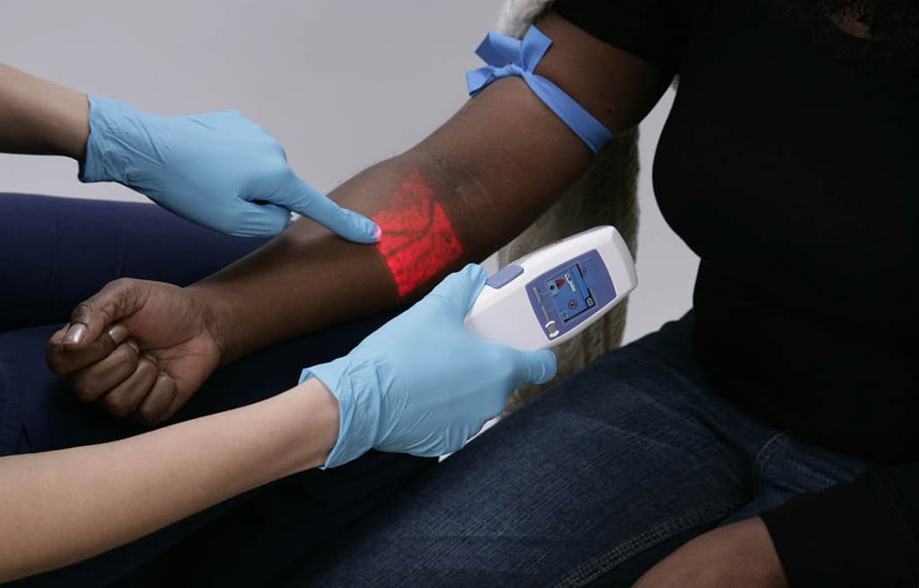 یکی از معضلاتی که پرستاران و کارشناسان آزمایشگاه ها با آن مواجه هستند، پیدا نکردن رگهای برخی از افراد می باشد که این می تواند باعث اذیت شدن پرستار و خود فرد شود برای حل این مشکل اقدام به تولید دستگاه قند خون و رگ یاب کرده اند،که با قیمت مختلفی خرید و فروش آن انجام می شود با کمک این دستگاه می توان رگهای مخفی را به راحتی و به طور واضح مشخص کرد. به طور کلی استفاده از دستگاه رگ یاب باعث بهبود وضعیت خون گیری، کاهش تلفات مراجعه کنندگان و افزایش اعتبار آزمایشگاه و پرسنل می شود، چون یک نمونه گیری اشتباه باعث بی اعتباری آزمایشگاه، پرستار و کارشناس آزمایشگاه می شود علاوه بر این، موجب آزار و اذیت مراجعه کننده هم می شود.
