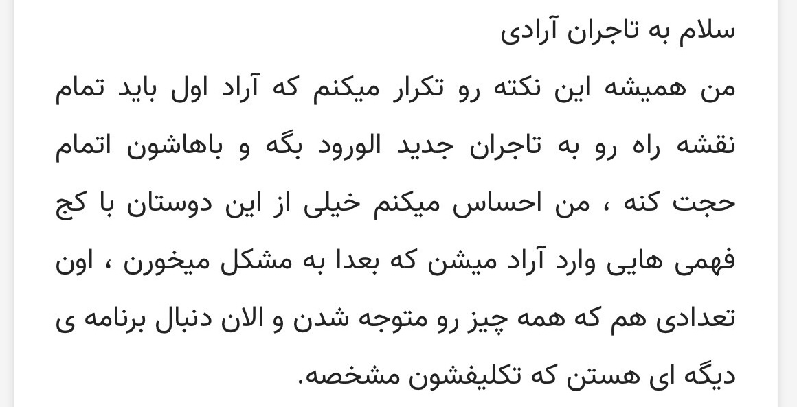 نکته مهم اینست که اگر نقشه راه به هر کدام از شما تاجران امروز از روز اول گفته می شد وارد تجارت نمی شدید.