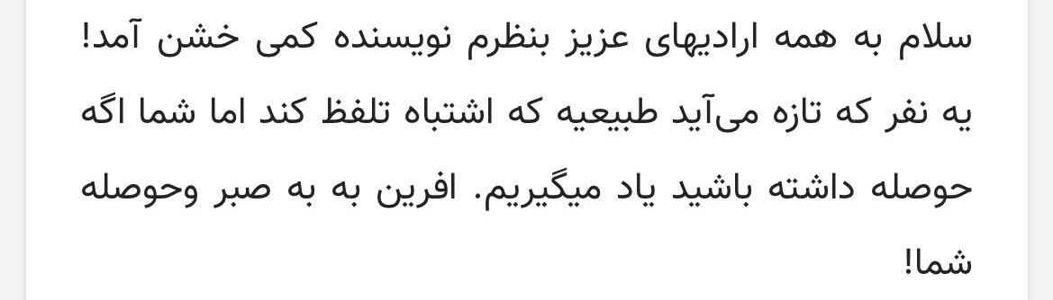 اما سخن شما درست است و اگر تازه وارد باشد طبیعی است این اشتباهات و ما هم واقعا خیلی باید بی انصاف باشیم که از تازه واردی این موضوعات را بیاوریم.