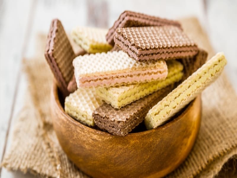 شکلات ویفری دارای درصد پایینی از شکر می باشد و توسط سس کاکائویی تزئین می شود.