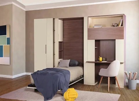 استفاده از یک تخت تاشو دیواری یک نفره در فضاهای کوچک و محدود، امکان زندگی راحت تر و بهینه را فراهم می کند این تخت هوشمند، به طور کامل فضای اتاق را به دست می دهد و امکان استفاده از فضای خالی را فراهم می سازد با نصب این تخت، اتاق مسکونی یا اداری شما به یک فضای چند منظوره تبدیل می شود که می توانید در آن بخوابید، کار کنید یا روزمرگی خود را انجام دهید.