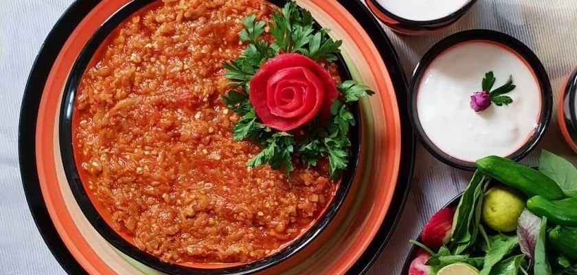 این غذا کاملا گیاهی است و می توان به عنوان غذای اصلی و هم پیش غذا استفاده کرد این غذا با بادمجان، فلفل دلمه ای، هویج، پیاز و گوجه استفاده می شود. موادی ساده است که در خانه های اکثر ما پیدا می شوند. با وجود سادگی مواد تشکیل دهنده، اما این غذا طعم لذیذی دارد.