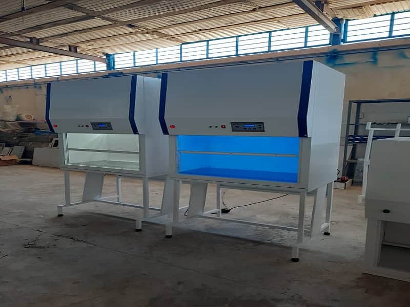 آزمایشگاه ها: در آزمایشگاه ها، هود لامینار عمودی برای فرآیندهایی مانند فراسنجه گیری و تهیه نمونه استفاده می شود، این تجهیزات به محیط آزمایشگاه کمک می کنند که از ذرات آلوده و ویروس ها جدا شود.
