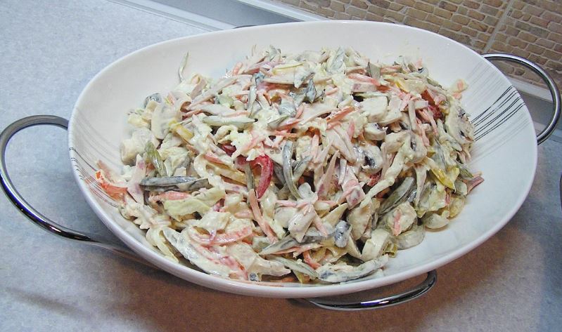 امروزه مصرف سالاد در بین مردم بسیار افزایش پیدا کرده است، علاوه بر سالاد کلم سفید که در بالا ذکر شد، سالاد ماکارونی نیز طرفداران خاص خود را دارد. سالاد ماکارونی با مرغ و کلم سفید نیز یک غذای نسبتا رژیمی محسوب می شود، البته اگر با سس مایونز رژیمی مصرف شود، زیرا ماکارونی آبکش شده ، مرغ پخته شده و کلم سفید خود دارای کالری نسبتا پایینی هستند، این غذا برای دوست دارن غذاهای رژیمی بسیار مناسب است.
