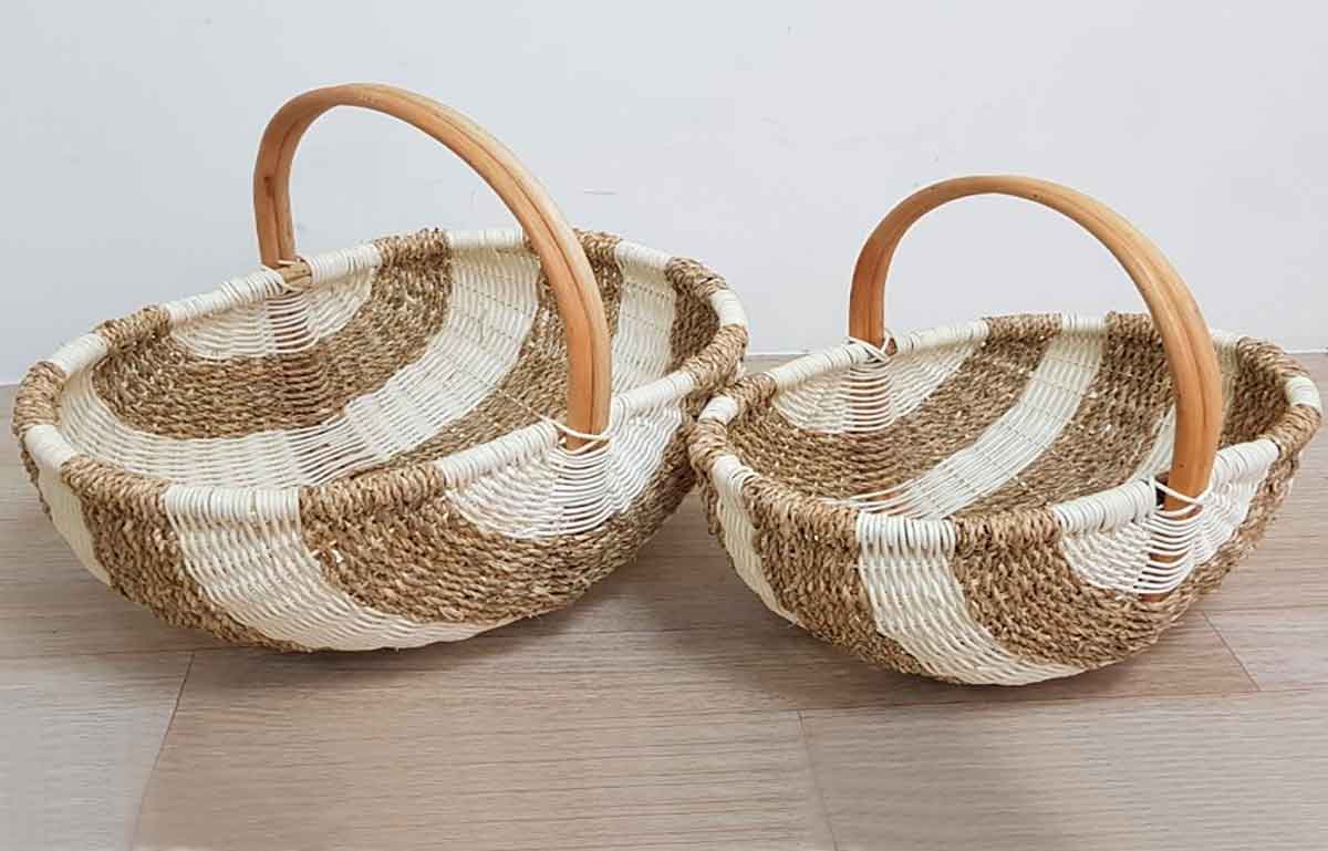 این سبد ها را با استفاده از حصیر درخت نخل درست شده و بسیار مقاوم و محکم می باشند. هر چند که این گونه صنایع در کشور به فراموشی سپرده شدند ولی از نظر صادرات و فروش در بازار ها توان فروش بالایی دارند که باید بیشتر روی فروش این محصولات فعالیت کرد.