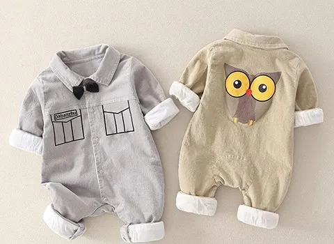 از طرحهای فانتزی و عروسکی برای نوزادان دختر و نیز از طرحهای ماشین و غیره برای نوزاد پسر استفاده می شود در تولید این گونه لباسها از الیاف نخی و پنبه ای با لطافت خاص استفاده شده که به بدن کودک آسیبی نمی رساند.