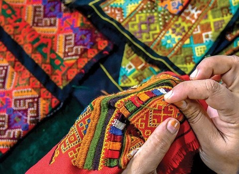 لباس بلوچی زنانه در زاهدان دوخت با نخ های ضخیم می باشد.