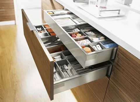 اکسسوری در انواع مختلفی تولید می گردد که بعضی از آنها برای نظم دهی و دسته بندی فضای درون کابینت مفید هستند.