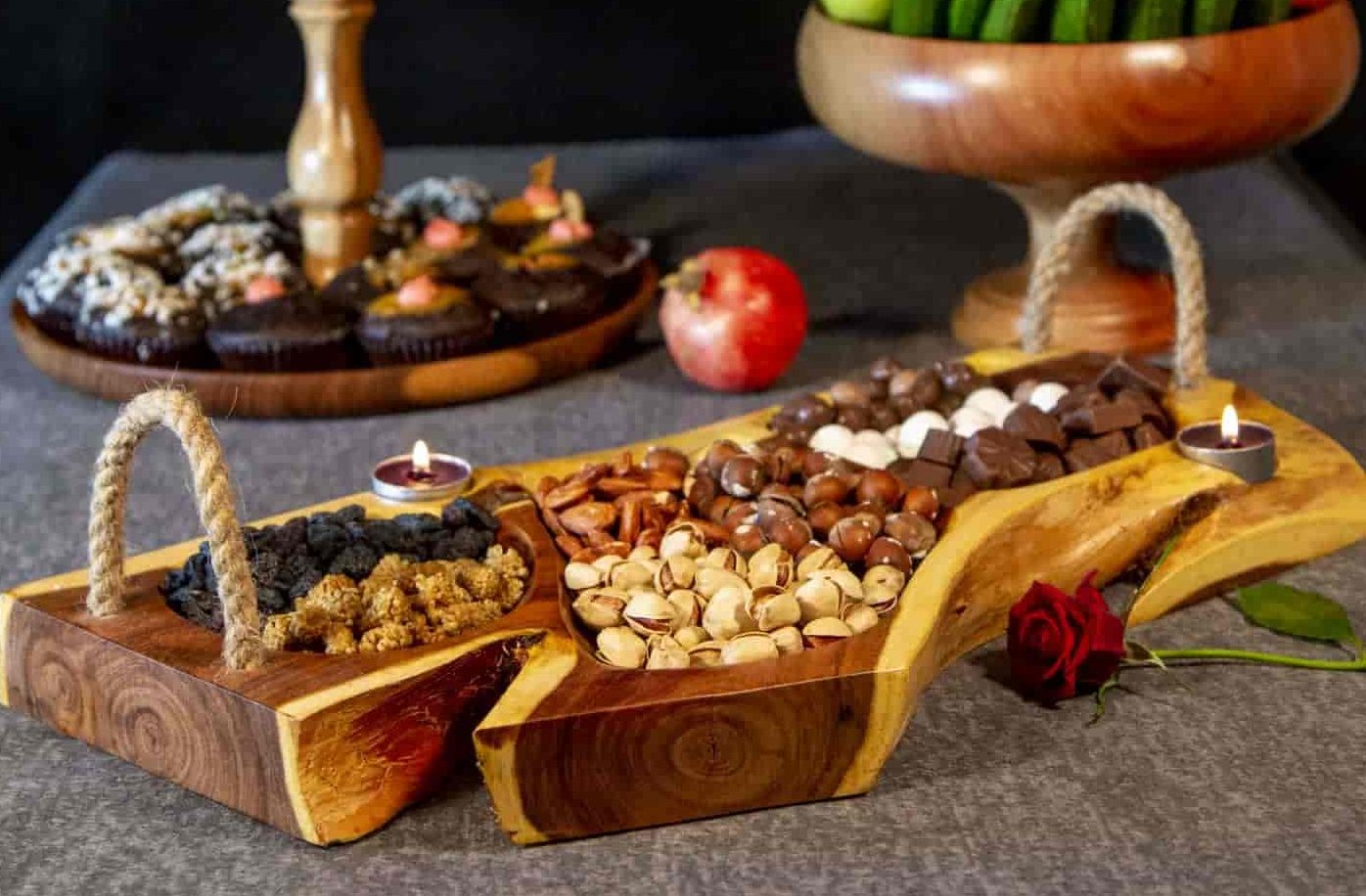 ظروف مخصوص آجیل و تنقلات در اکثر منازل دیده می شود و در بازار تحت عنوان اردو خوری به فروش می رسد که نمونه های چوبی آن در اندازه ها و اشکال بسیار گوناگونی وجود دارند و با تعداد خانه های مختلفی به تولید می رسند.
