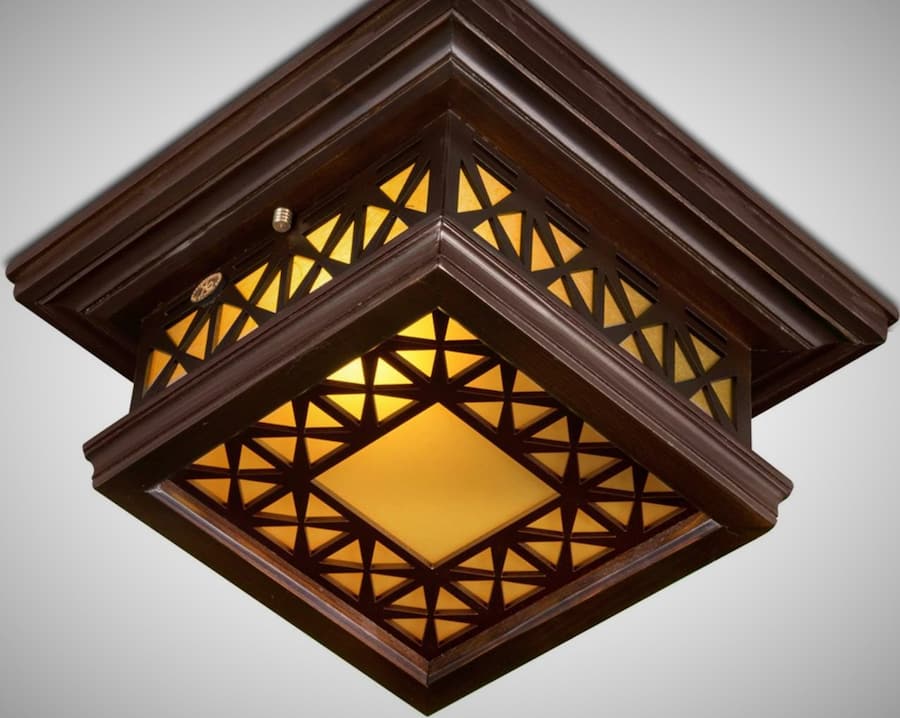 لوستر سقفی چوبی، همانطوریکه از اسمش پیداست به شکل کامل به سقف اتصال دارد.