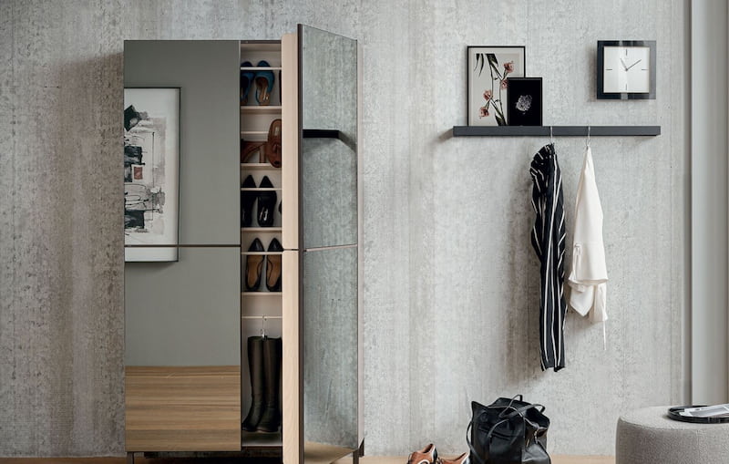 در دسته اول سبک بسیار مدرن و جدیدی را دارا می باشند، شما می توانید آینه را کمی با فاصله بیشتر یا مقداری بالاتر نصب کنید. این بستگی به سبک سلیقه، علاقمندی و البته در نظر گرفتن دیزاین منزل شما دارد، گفتنی است این مدل از جا کفشی چوبی آینه دار در زمانی که در قسمت قرار دادن جا کفشی و نصب آن مانعی مانند کلید برق یا شیارهای دیوار قرار دارد بسیار عالی می باشند. به این دلیل که شما می توانید به راحتی آینه را از سطح مانع فاصله داده و نصب کنید، لازم به ذکر است که شما می توانید آینه را بالای قسمت قرار گرفتن دو شاخه برق نصب کنید تا بتوانید برای استفاده از سشوار و دیگر لوازم برقی از آن استفاده کنید. باید خاطر نشان شویم که در این مدل از جا کفشی چوبی آینه دار، شما قادر هستید آینه را متناسب با قد اعضای خانواده نصب کنید. به عنوان مثال اگر فرزند شما در سنین نوجوانی قرار داشته و ممکن است به قد او اضافه شود، آینه را کمی پایینتر نصب کرده و با افزایش قد او به بالاتر بردن آینه بپردازید. گفتنی است که جا کفشی در این مدلها به صورت کابینتی بوده و شما به راحتی می توانید با باز کردن در آن به انتخاب کفش مورد نظر پرداخته و با دیدن کفشهایی تمیز که ذره ای خاک روی آنها ننشسته است لذت ببرید. نوع دیگر از جا کفشیهای چوبی آینه دار آینه به قسمت جا کفشی متصل بوده و شما می توانید علاوه بر استفاده از آینه قدی که در ساخت آن استفاده شده است به آراستگی خود بپردازید همچنین از قسمت جا کفشی آن برای حفظ و نگهداری کفشهای خود استفاده کنید.