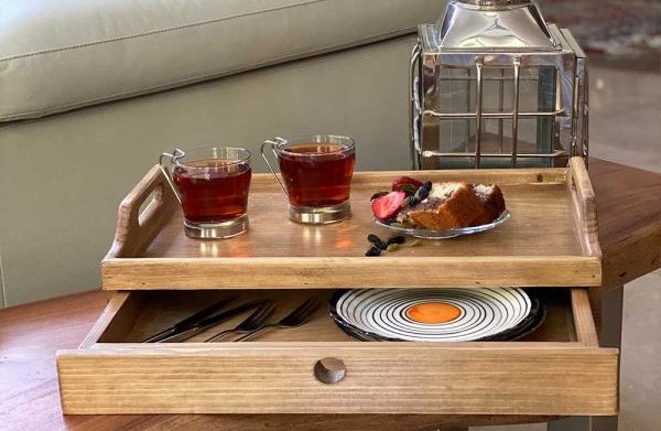 اگر از سینی چوبی برای حمل و نقل اشیاء مختلف نظیر لیوانها استفاده می کنید بهتر است که لبه های آن کمی بلندتر باشد تا از افتادن لیوانها و دیگر اشیا بر روی آن جلوگیری کند و حمل آنها با امنیت بیشتری صورت بپذیرد.