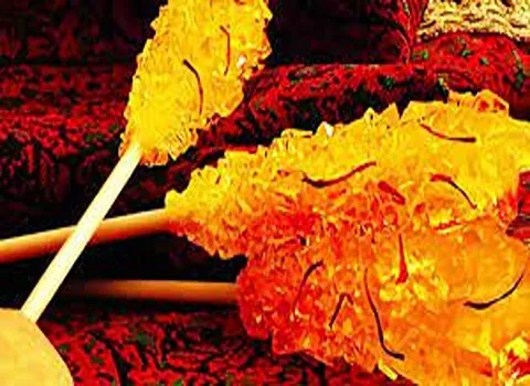 طی فرآیندهای خاص با حرارت دادن شکر و افزودن مواد طبیعی مانند زعفران درجه یک تولید می شود و با شکل خاص تولید می گردد.