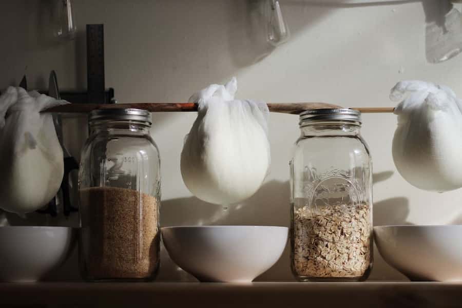 کیسه توری را داخل یک صافی قرار داده و صافی را روی یک قابلمه تفلون بگذارید تا آب گرفته شده از ماست درون آن بریزد و سپس ماست را درون کیسه پارچه ای توری شکل بریزید و کیسه را گره بزنید و به مدت چند ساعت به همین شکل رها کنید تا آب ماست به خوبی خارج شود مدت زمان لازم برای این کار بستگی به میزان چربی ماست دارد.