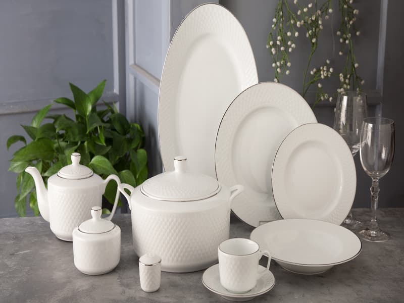 ۱۸ عدد بشقاب پلو خوری و میوه خوری، ۱۲ عدد بشقاب خورشت خوری و سالاد خوری کوچک، یک عدد سالاد خوری بزرگ، سه عدد دیس با قطر کوچک، متوسط و بزرگ و... می باشد.