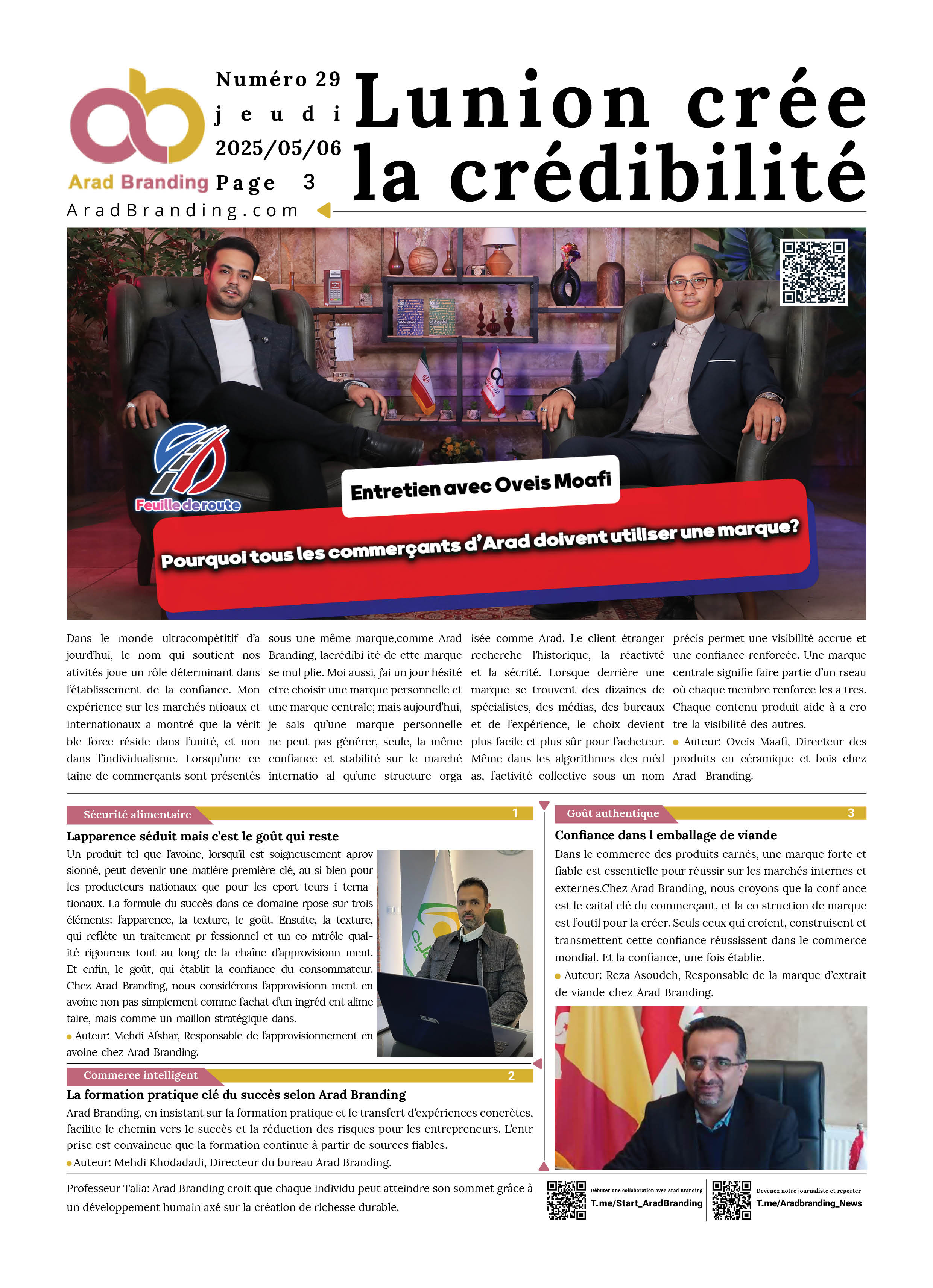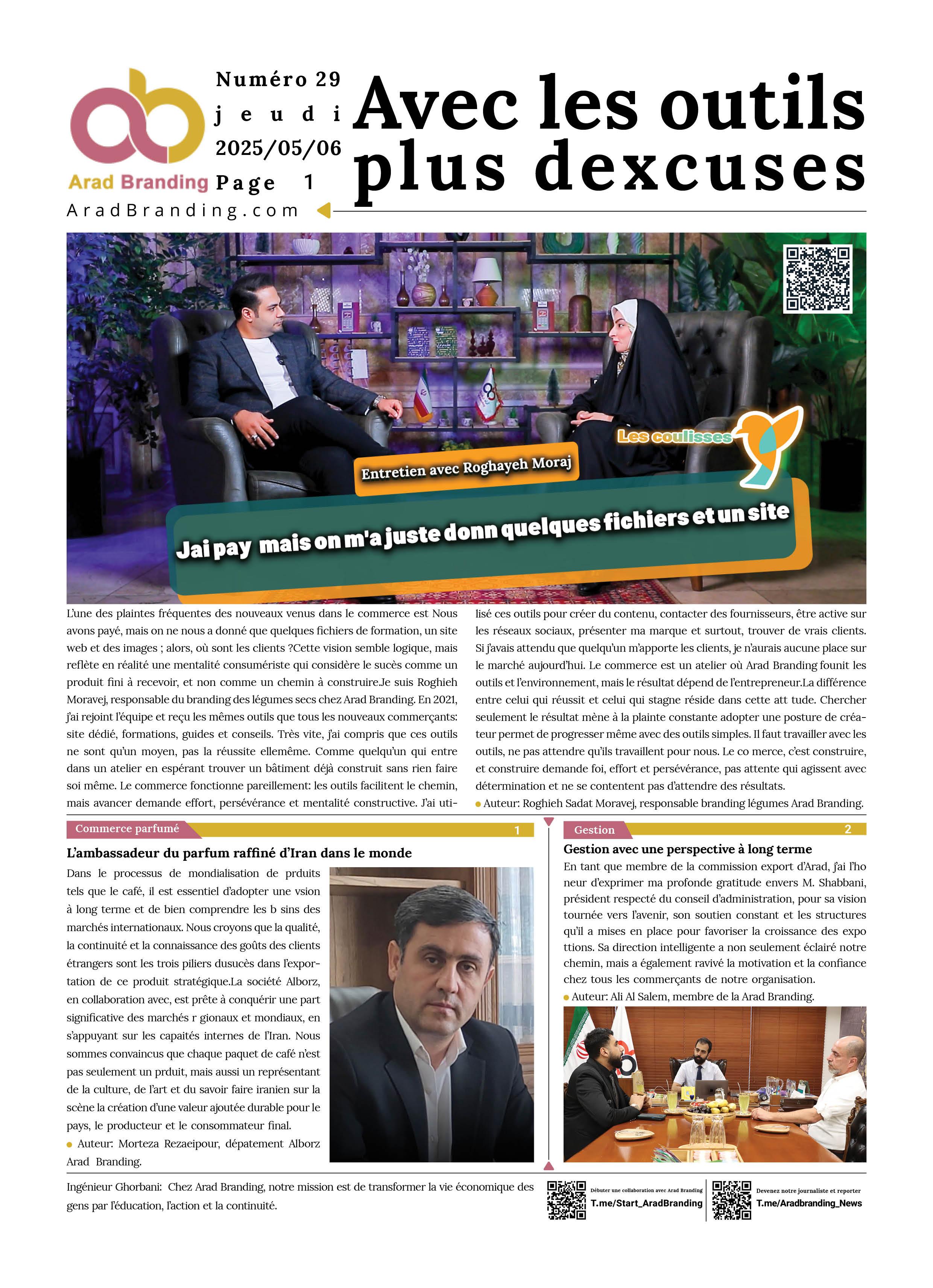 - Qazvin, 7 juin à 18h, communication avec les représentants dans l'application Arad Branding, aradbranding.com/ashoory