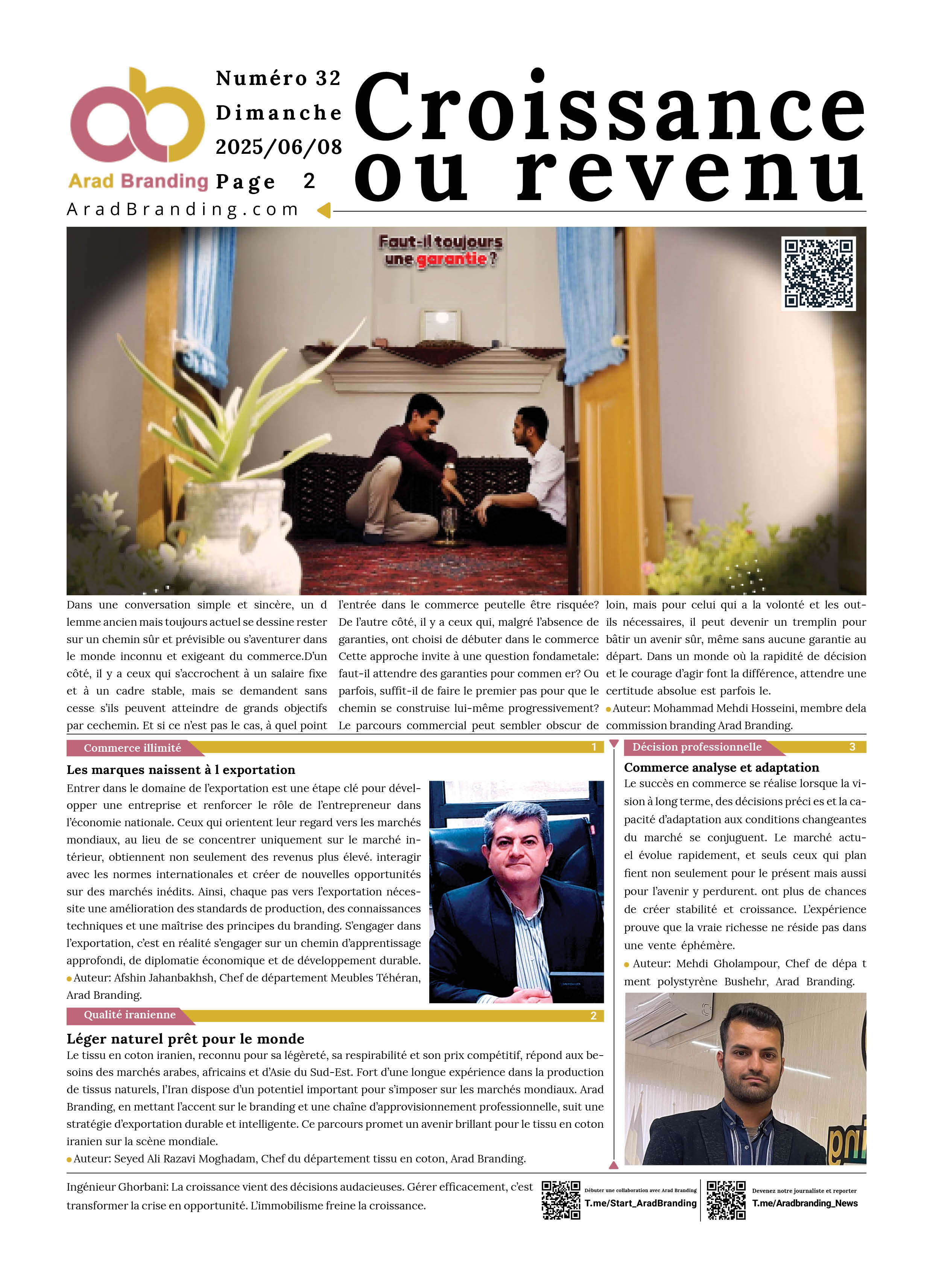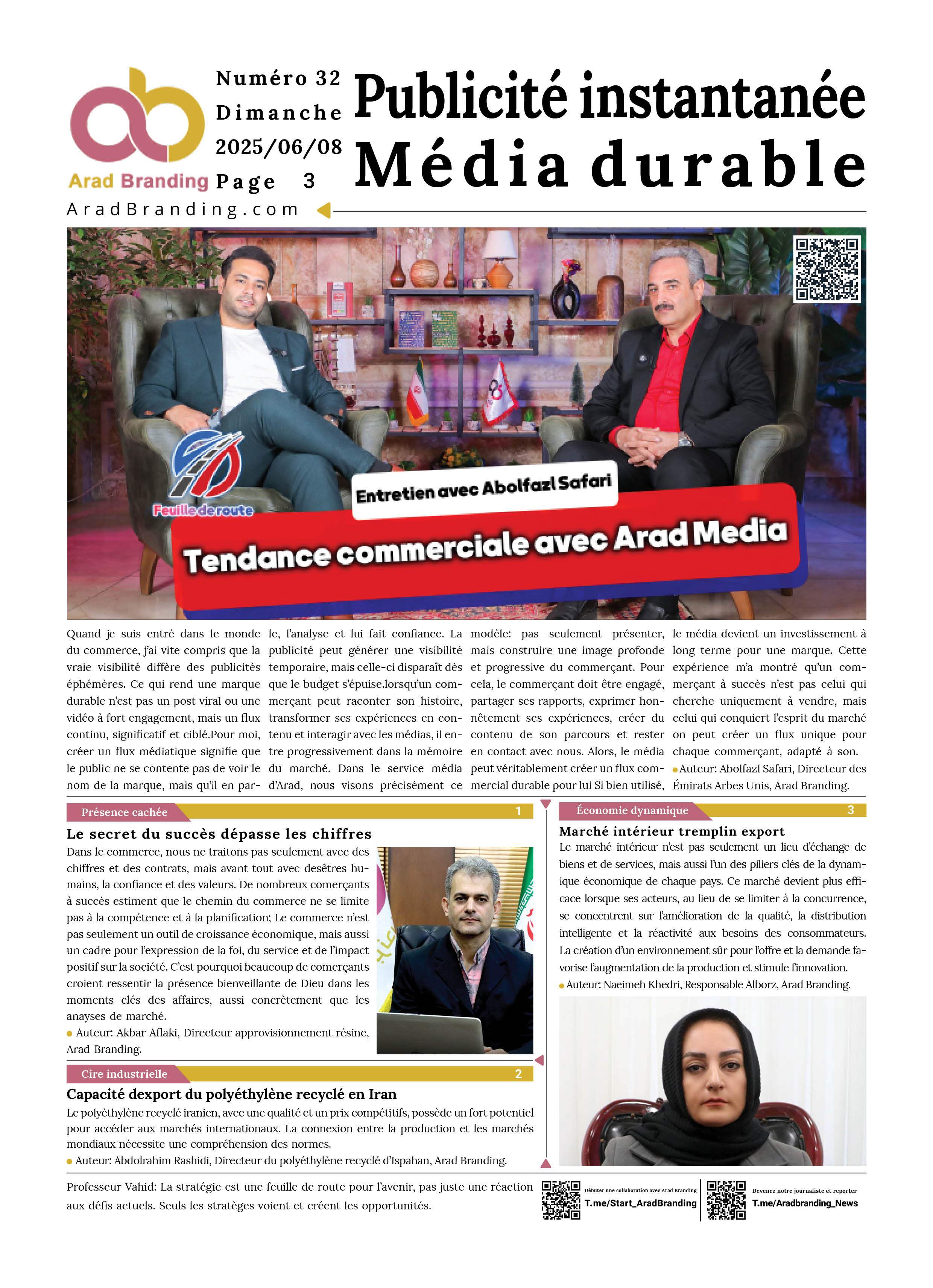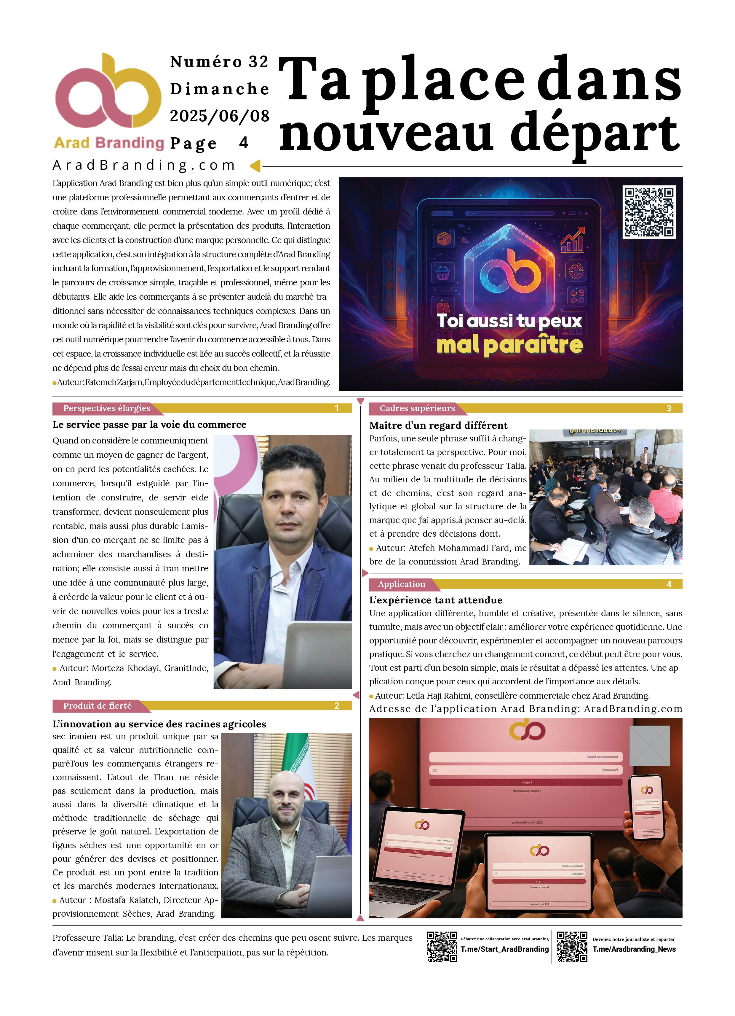 Les commerçants qui souhaitent publier leur contenu dans le Journal Arad Branding peuvent contacter l'ID Telegram suivant et soumettre leur contenu et images.