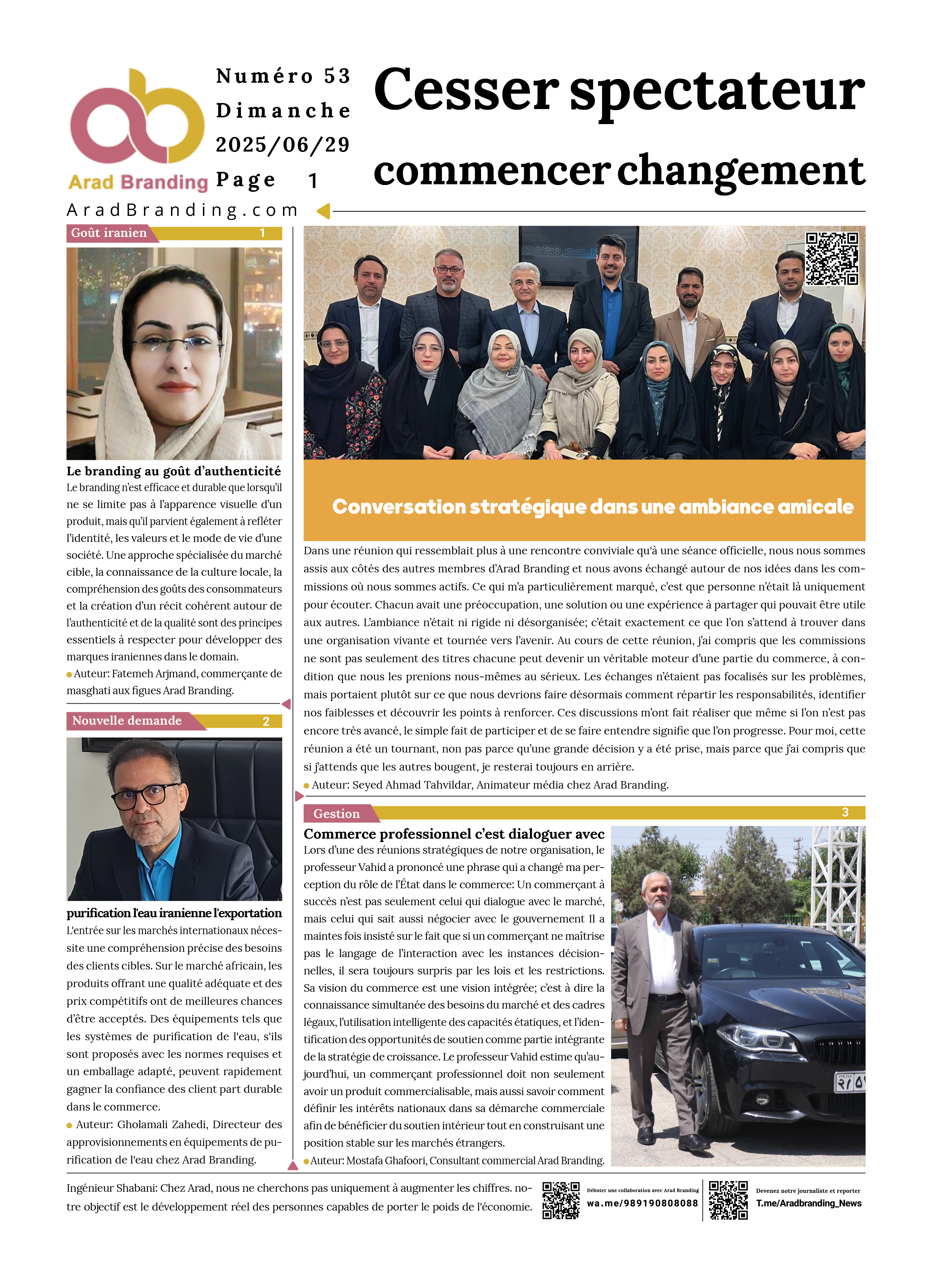 Plus vous agissez professionnellement, plus vous avez de chances de fidéliser les clients et plus la confiance mondiale en la marque iranienne grandit.