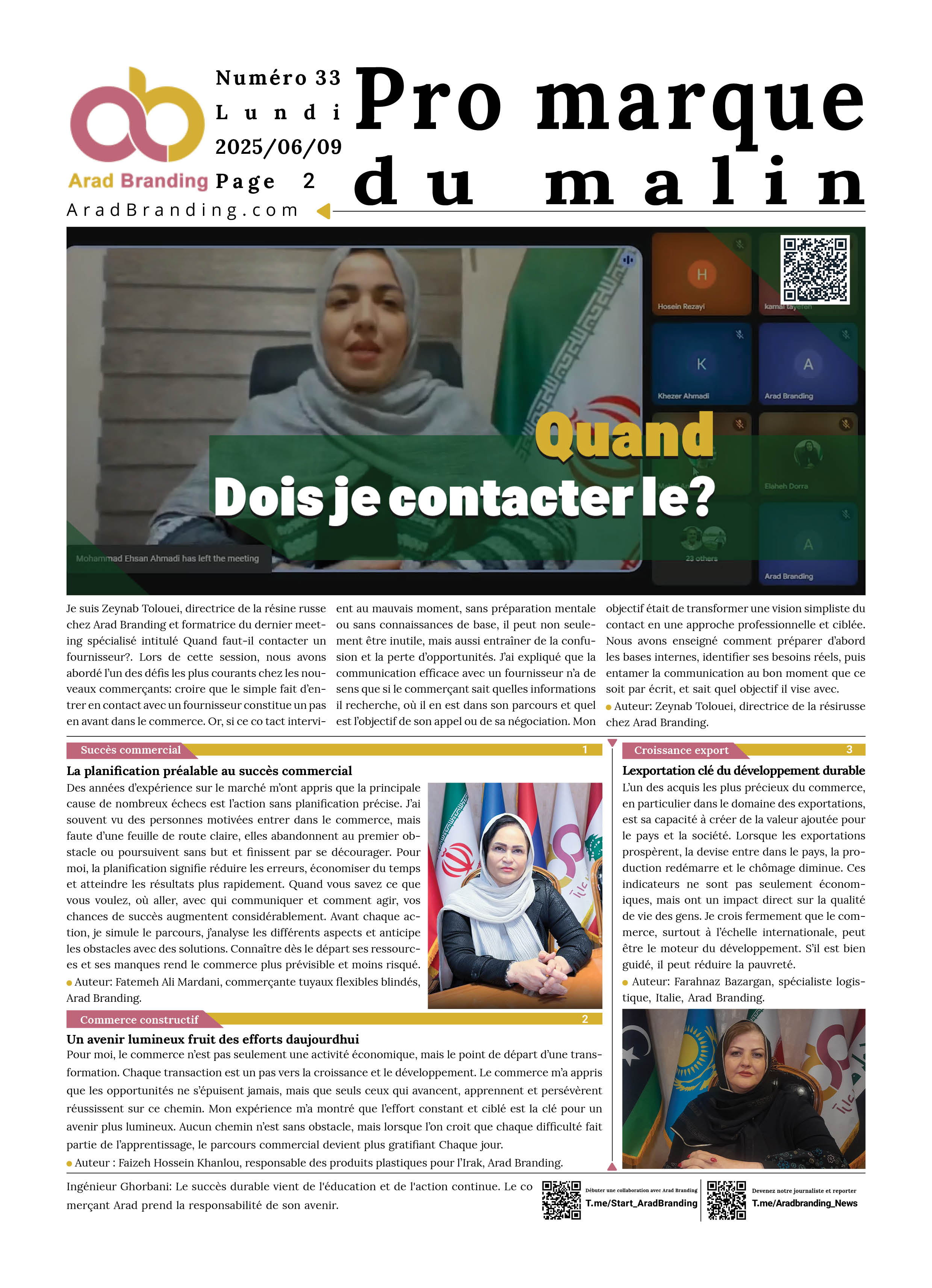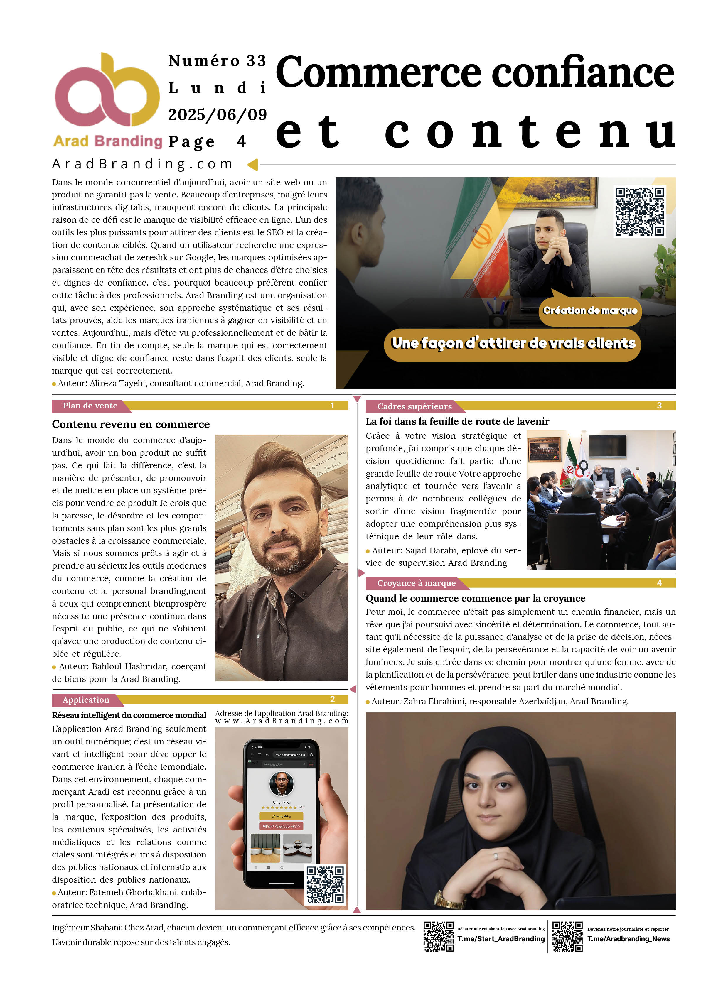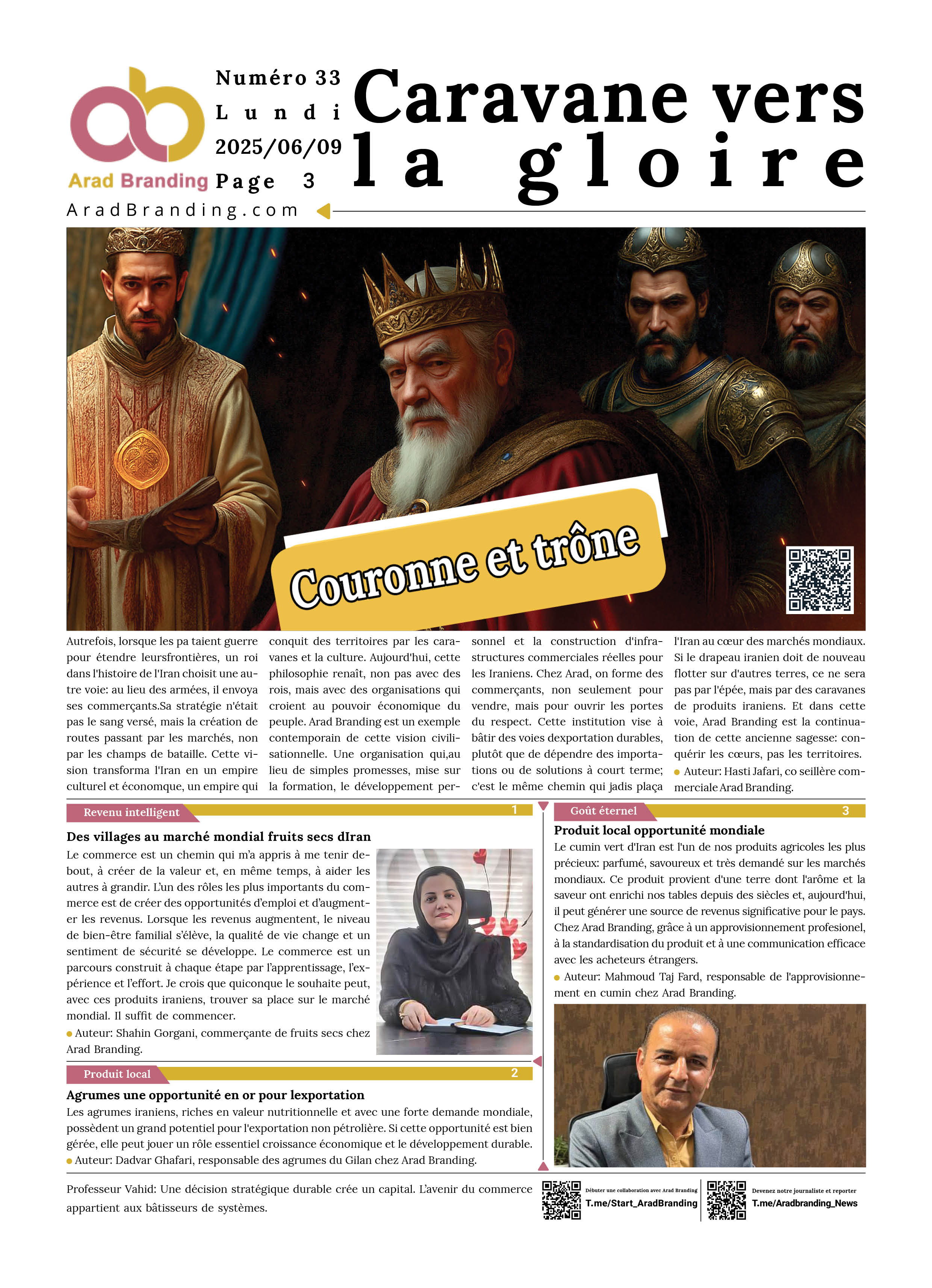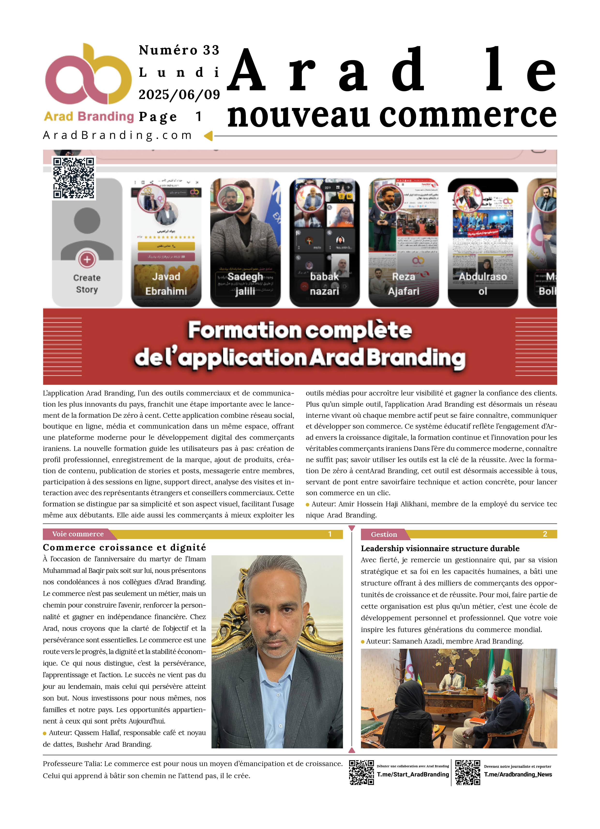 Ceux qui souhaitent publier leur contenu dans le journal Arad Branding peuvent contacter l'ID Telegram ci-dessous et soumettre leur contenu et images.