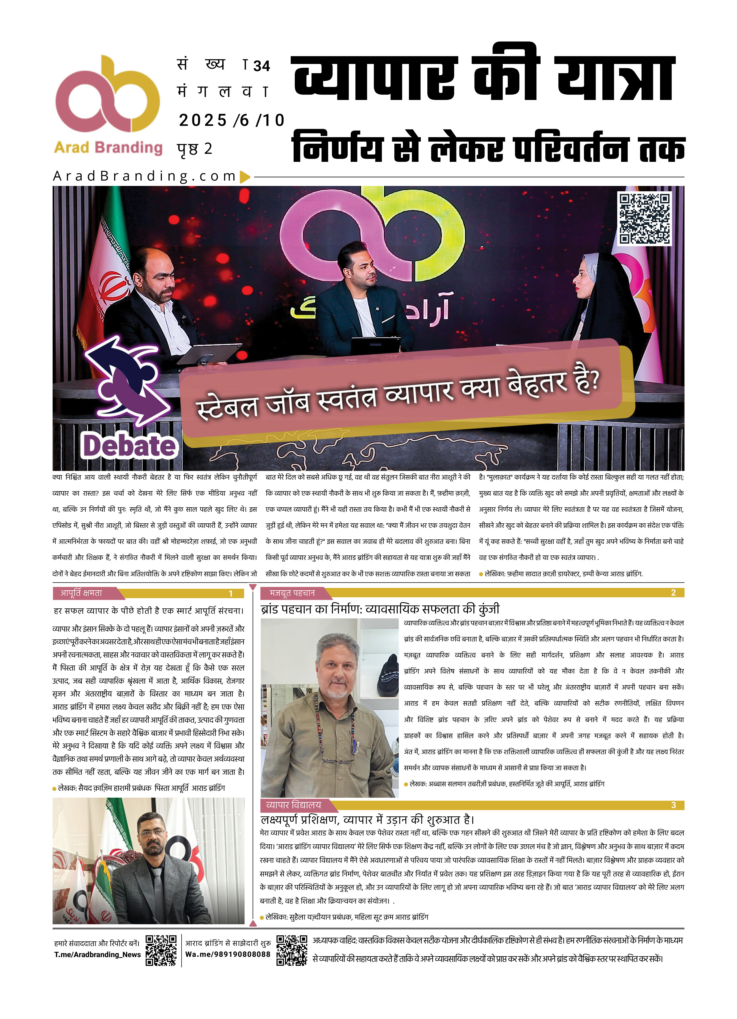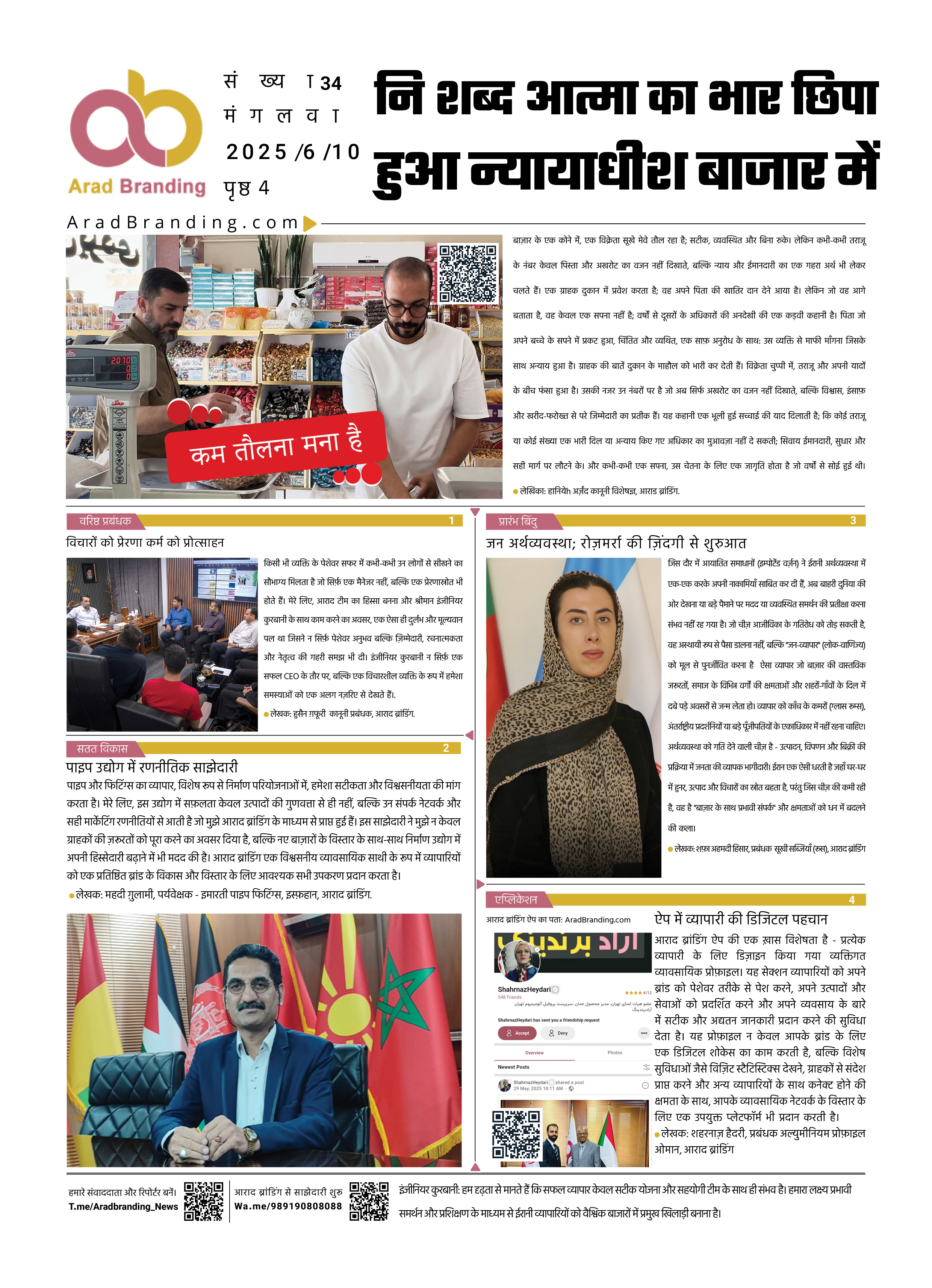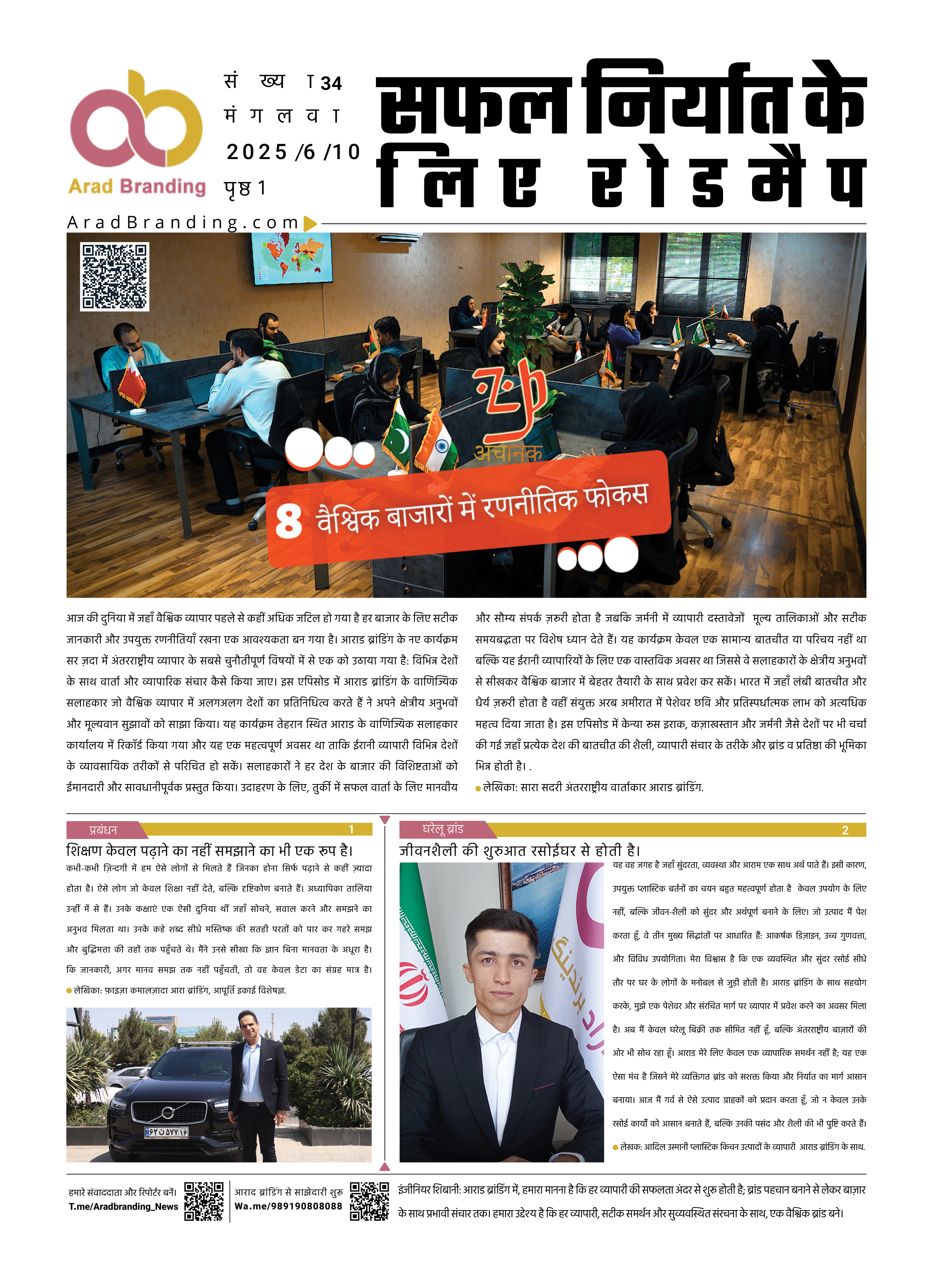 जब आप अराद ब्रांडिंग के आधिकारिक लेटरहेड के साथ एक पत्र किसी कारखाने के मालिक, विदेशी व्यापारी या घरेलू निवेशक को भेजते हैं, और ब्रांड वीडियो और अखबारों के लिंक शामिल करते हैं, तो उनका दिमाग एक साधारण व्यक्ति या कंपनी को नहीं बल्कि मीडिया शक्ति और पेशेवर संरचना वाले एक ब्रांड को समझता है।