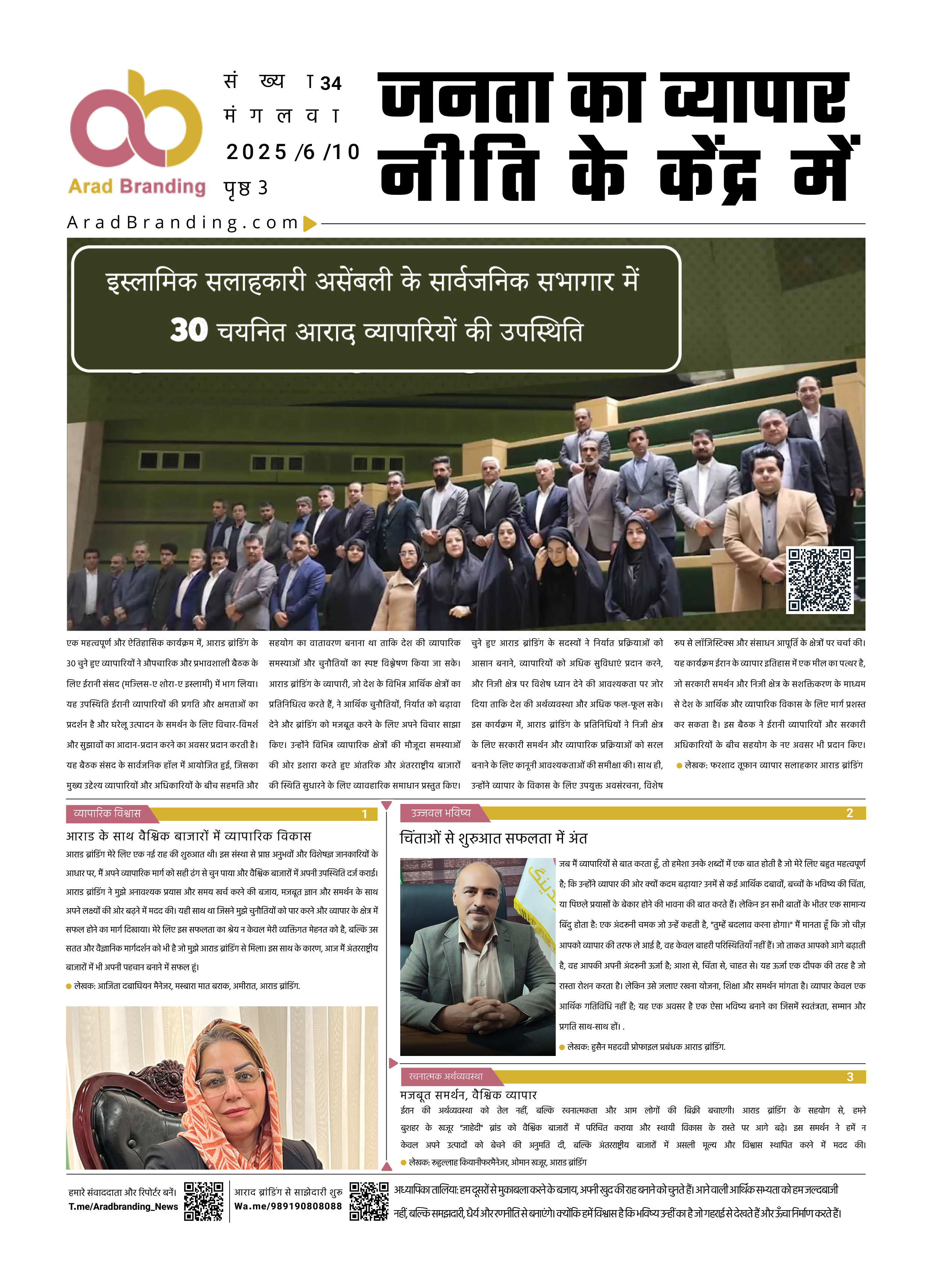 जो लोग अराद ब्रांडिंग अखबार में अपनी सामग्री प्रकाशित करना चाहते हैं, वे निम्नलिखित टेलीग्राम आईडी से संपर्क करके अपनी सामग्री और छवियां जमा कर सकते हैं।