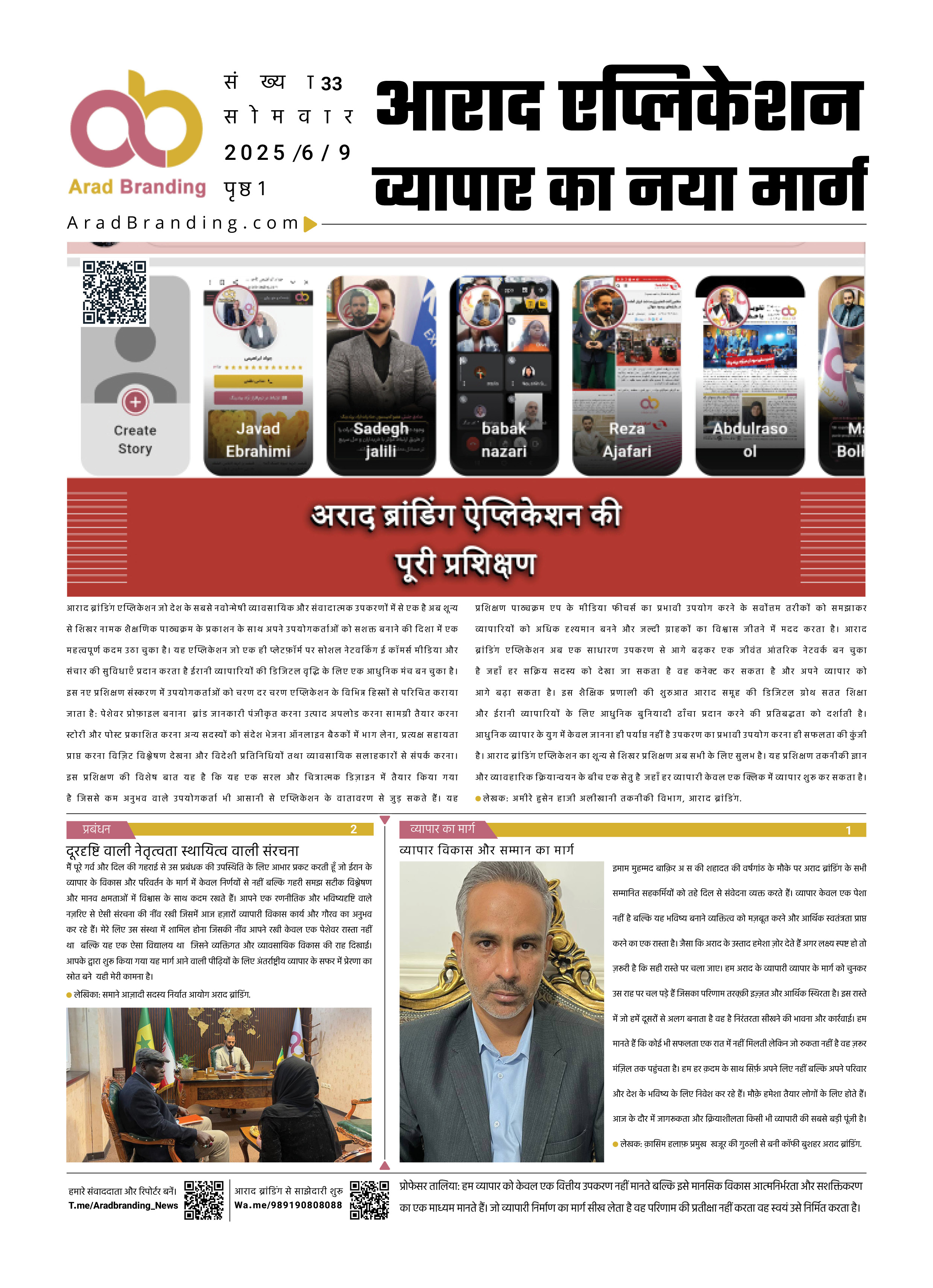 जब अराद ब्रांडिंग सॉफ्टवेयर आर्थिक कार्यकर्ताओं, अंतर्राष्ट्रीय व्यापारियों, बड़े कारखानों के मालिकों, आपूर्ति और उपभोक्ता कंपनियों के बीच दुनिया भर में फैलता है, तो एक बड़ी घटना होती है: