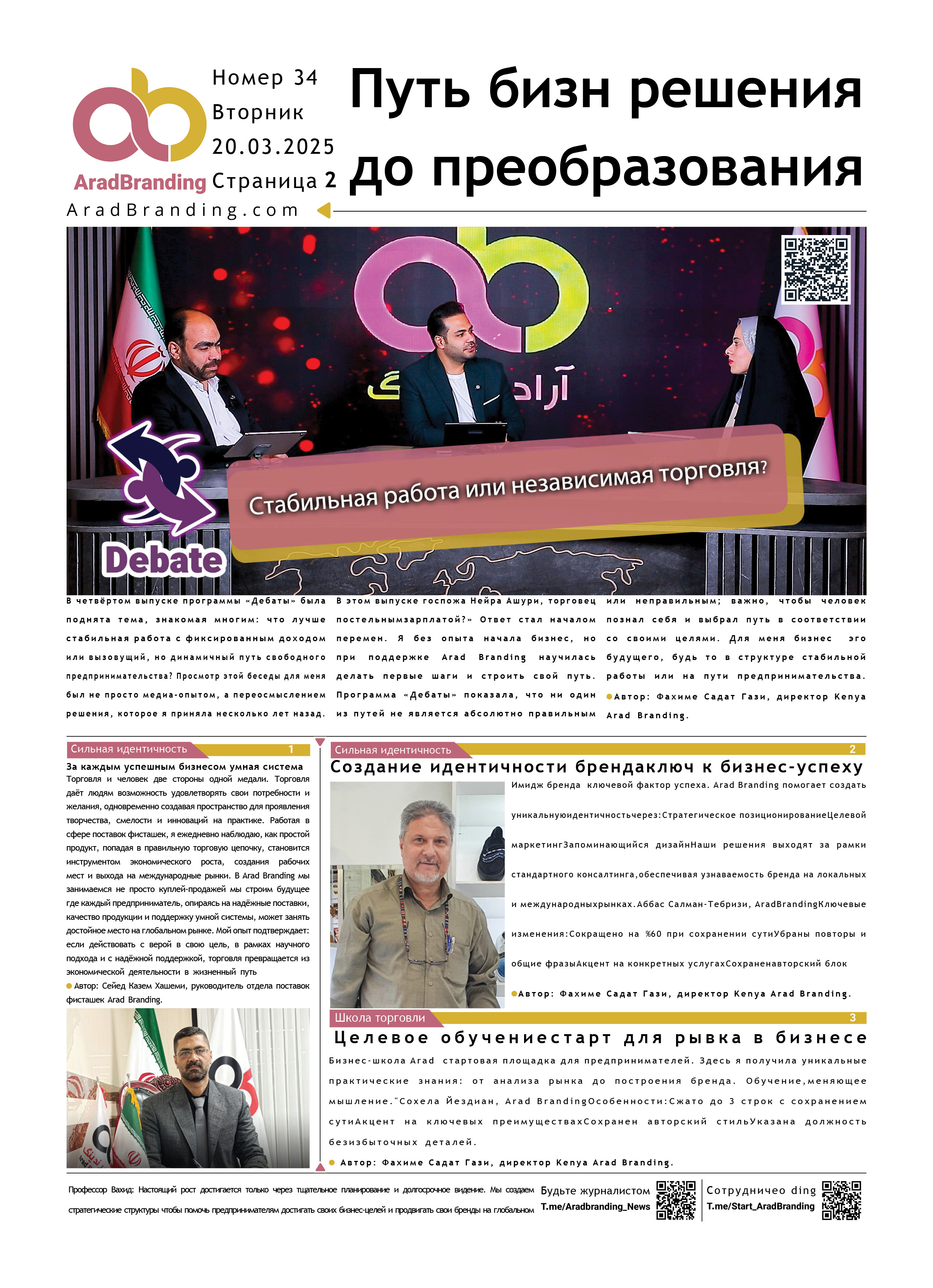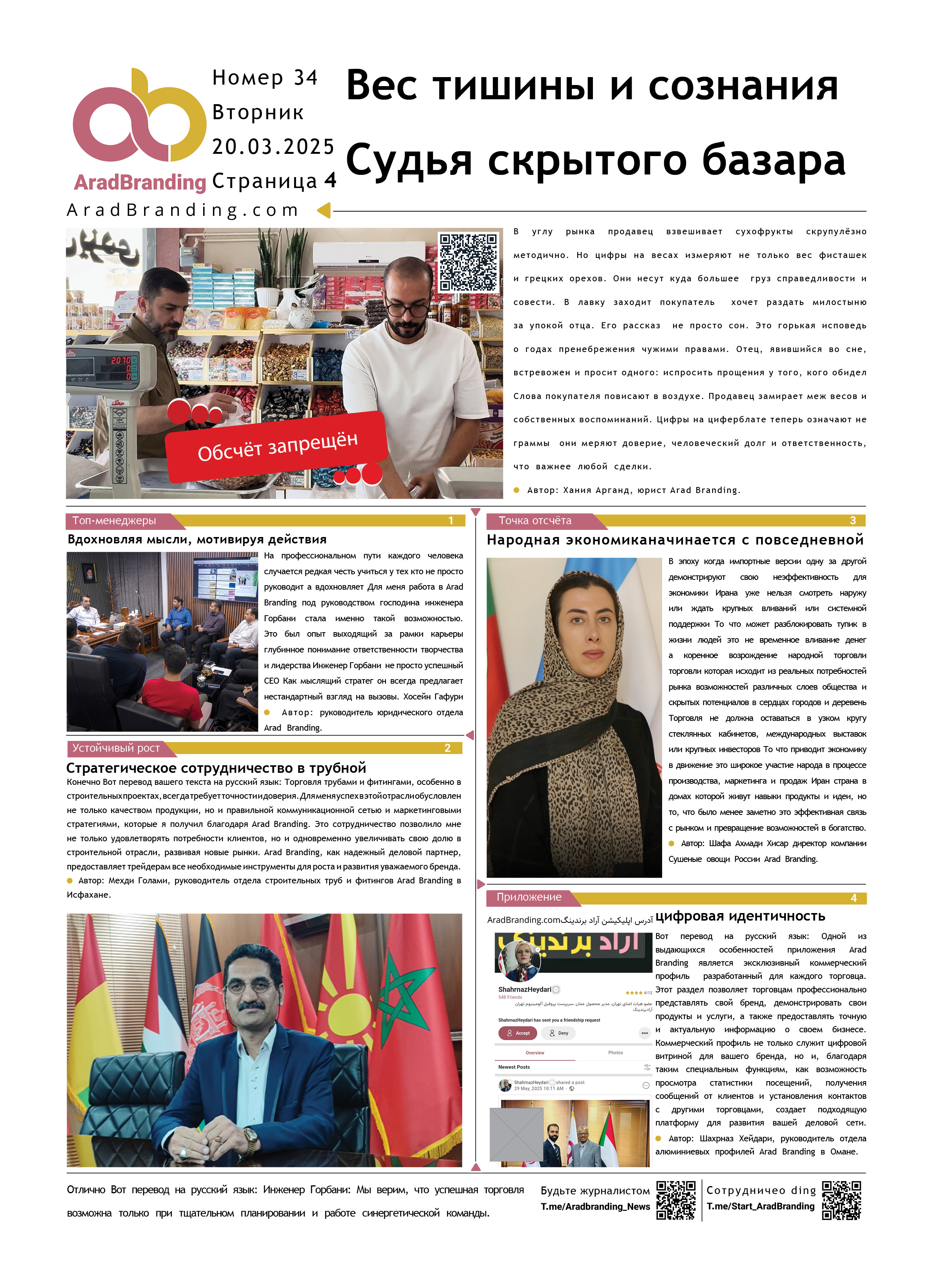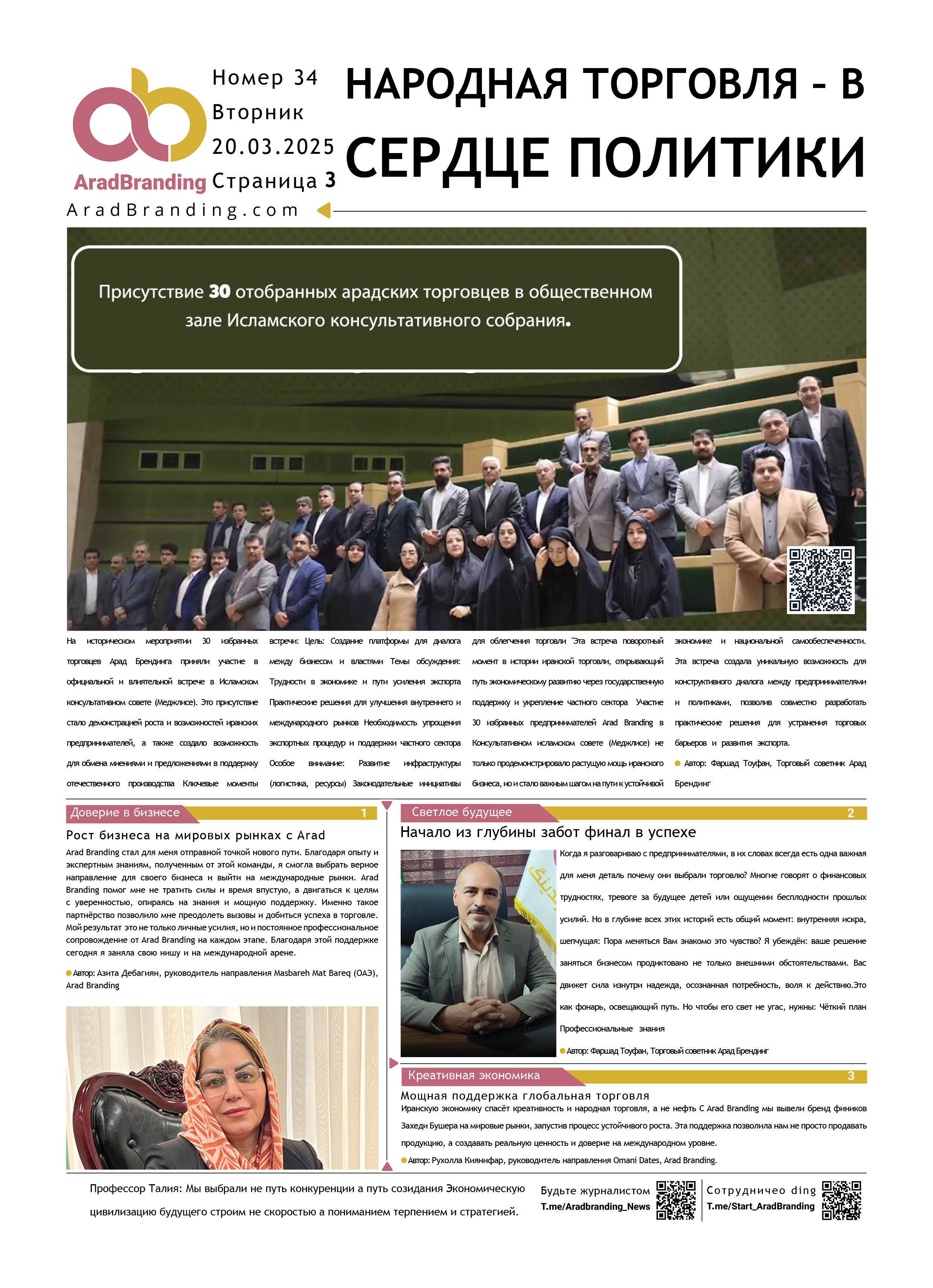 Те, кто хочет, чтобы их контент был опубликован в газете Arad Branding, могут связаться по Telegram ID ниже и отправить свой контент и изображения.