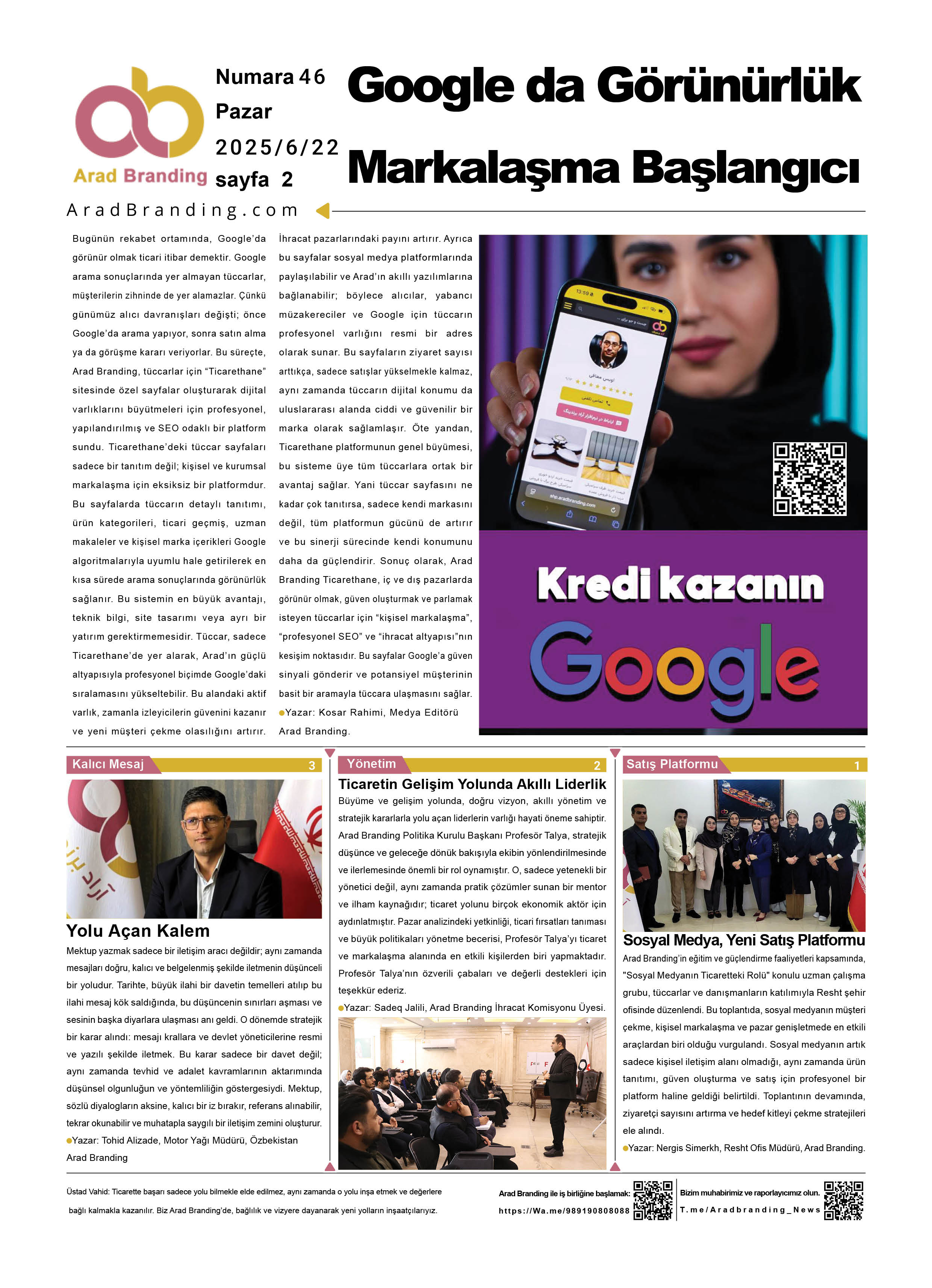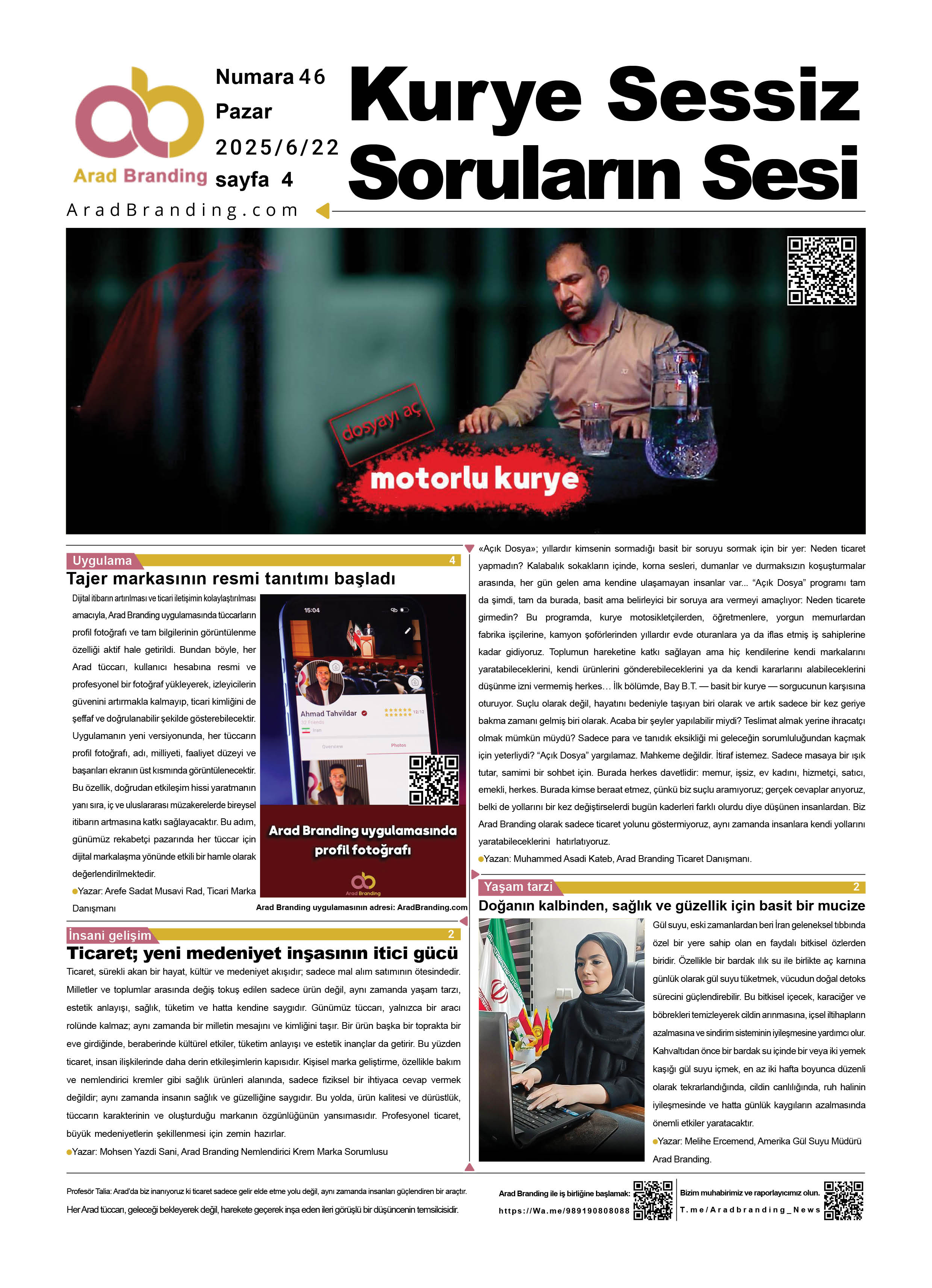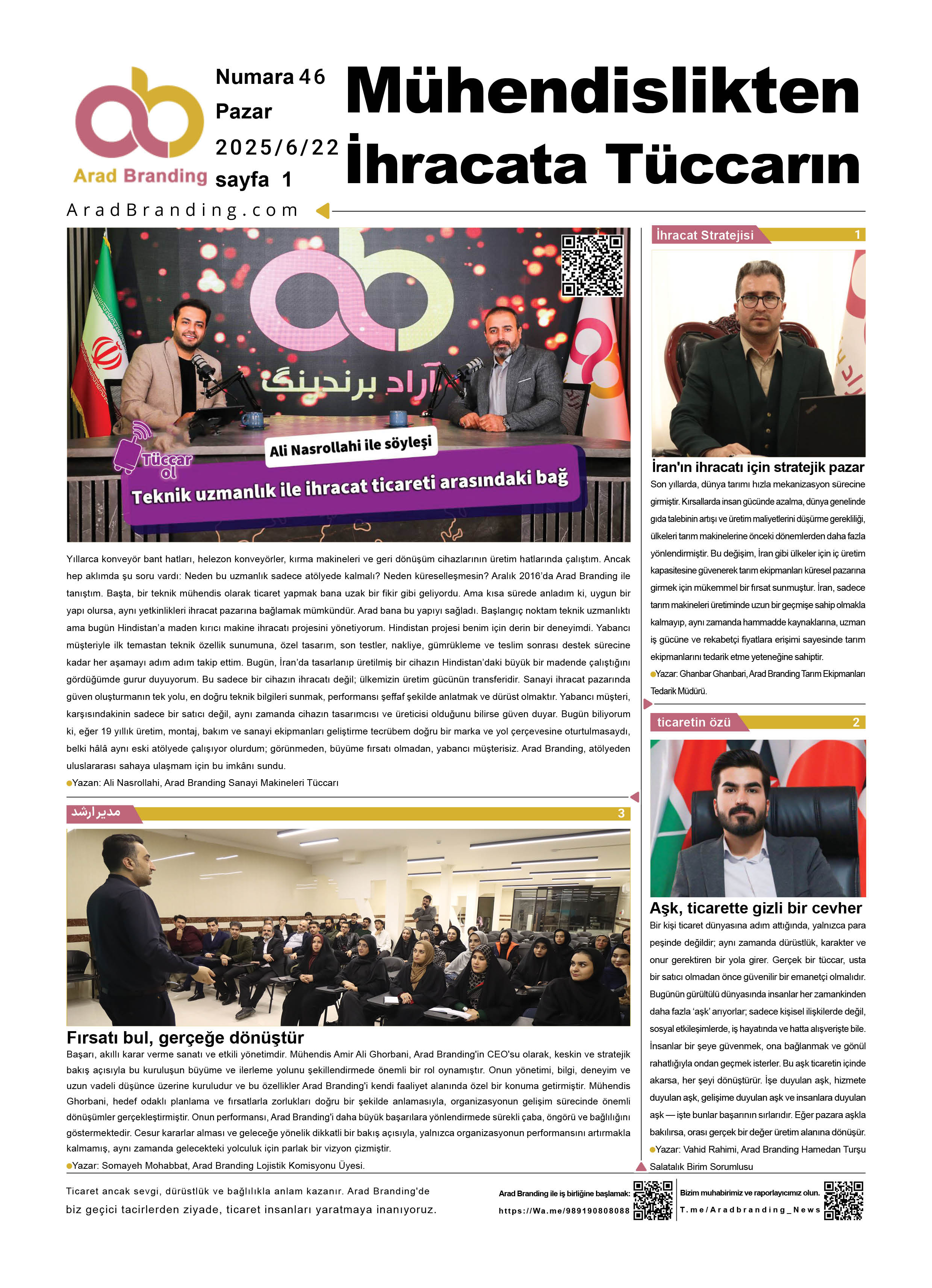 Arad Branding Gazetesi'nde yayınlanması için içerik göndermek isterseniz, aşağıdaki Telegram ID'sine mesaj atın.