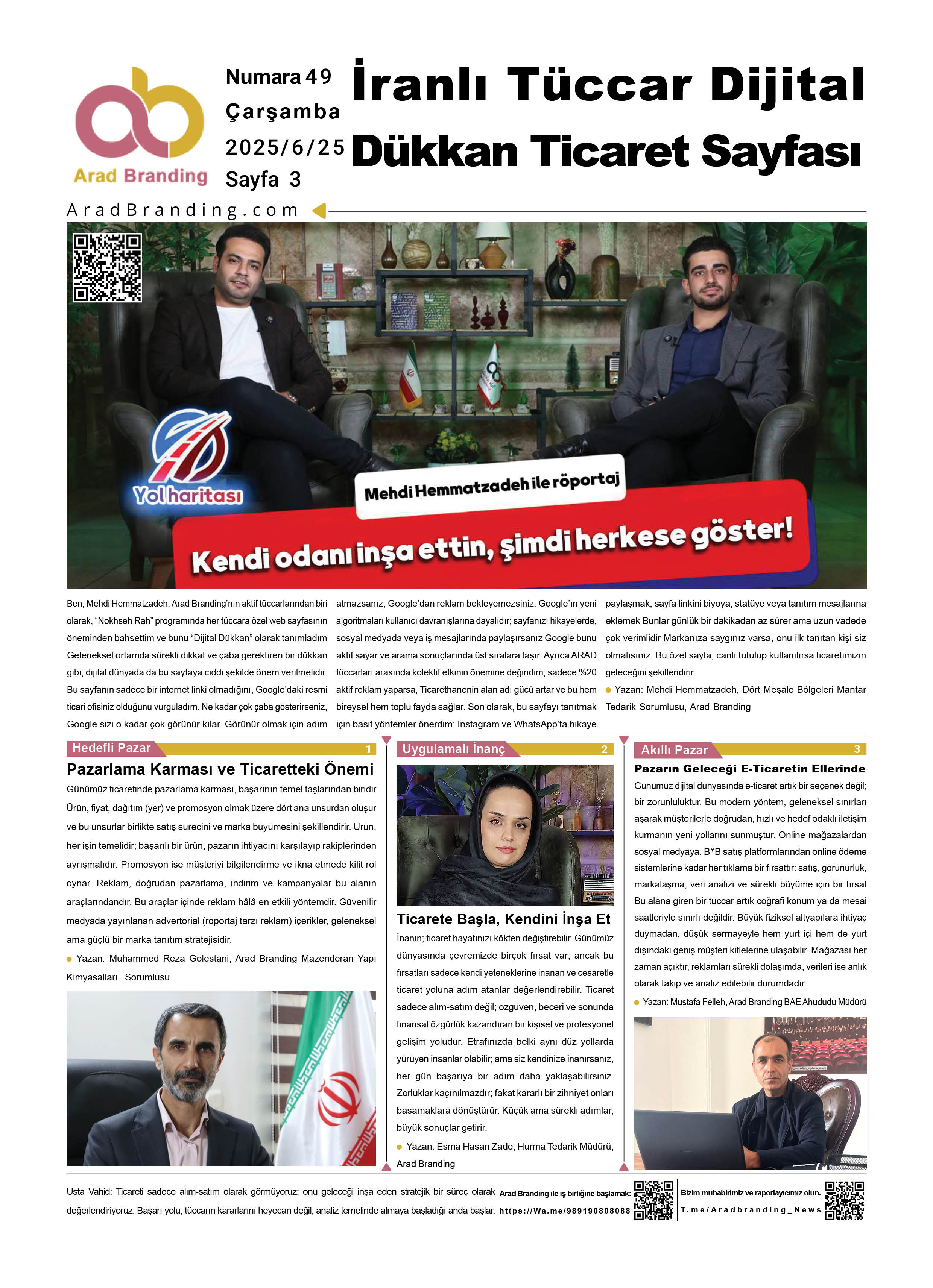 Arad Branding gazetesinde yayınlanması için içerik göndermek isterseniz, aşağıdaki Telegram ID'sine mesaj atın.