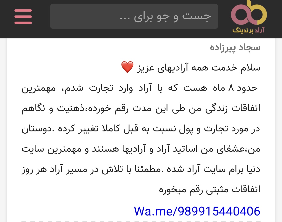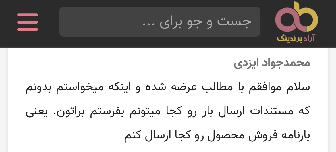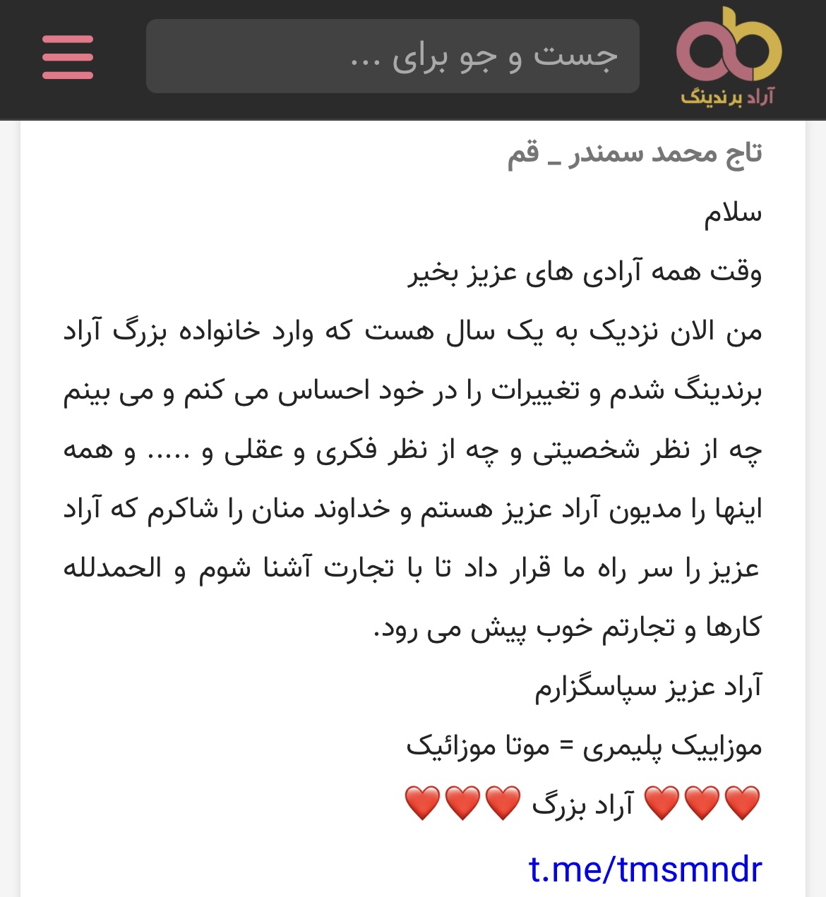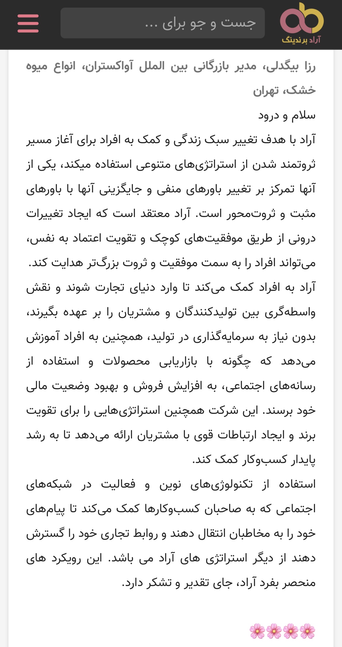 خانم بیگدلی در این کامنت بسیار کوتاه و مختصر آراد برندینگ را به دیگران توضیح می دهد.