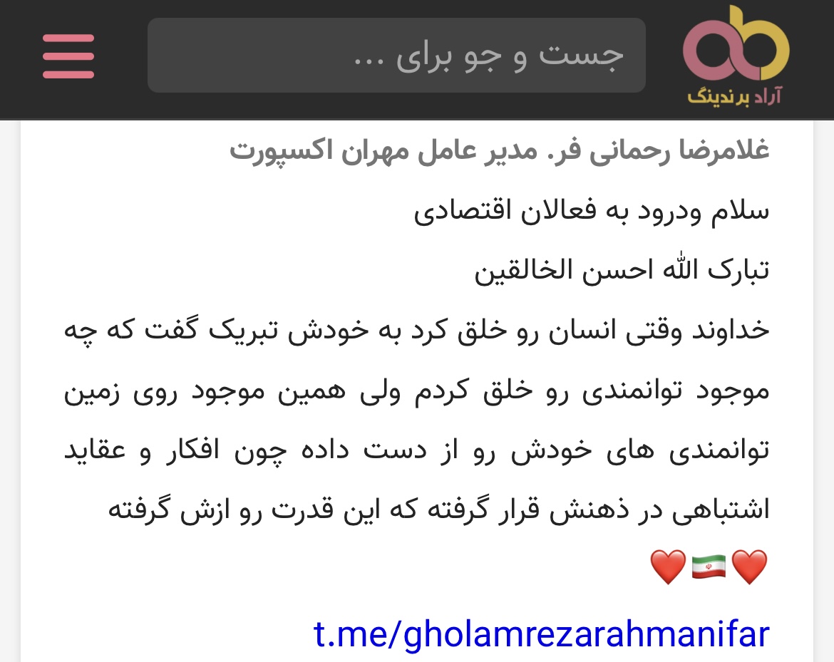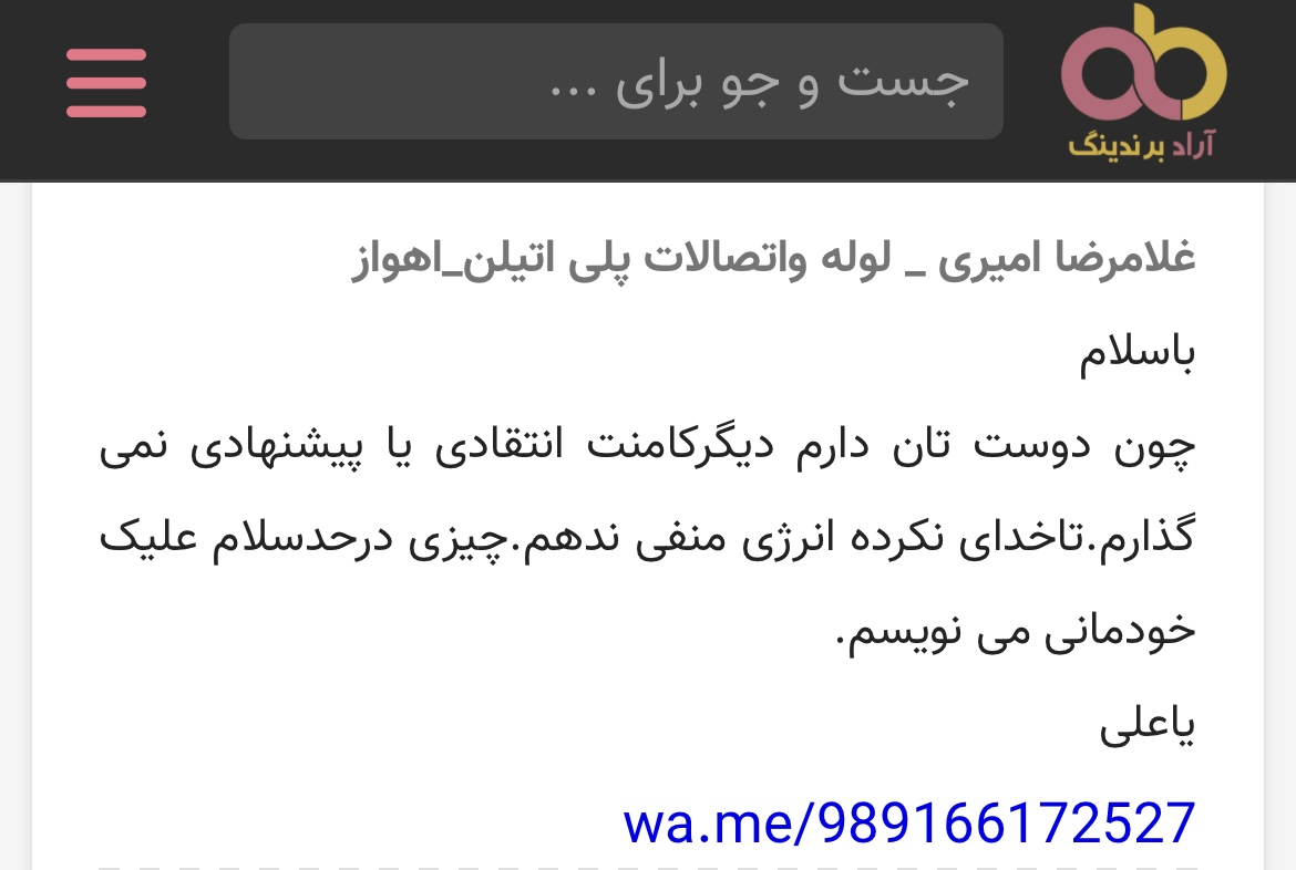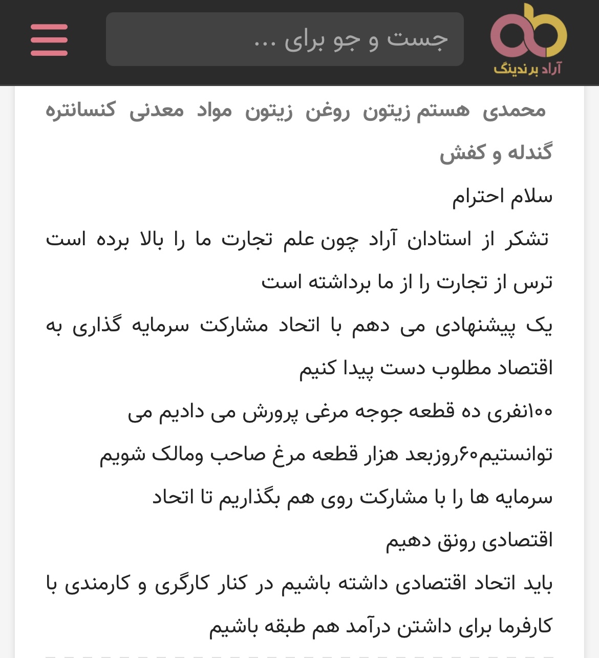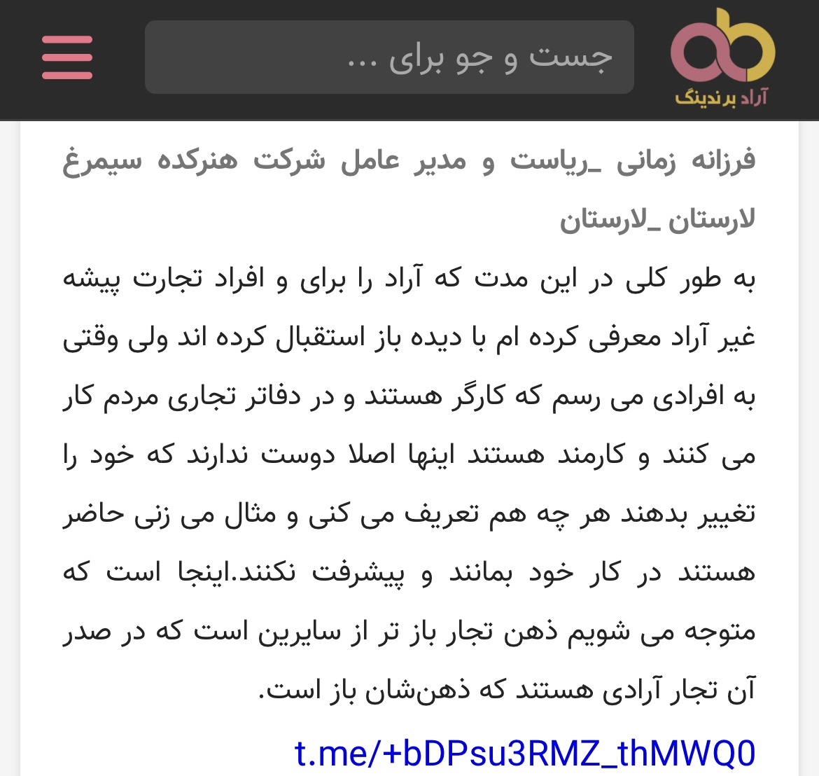 خانم بیگدلی در این کامنت بسیار کوتاه و مختصر آراد برندینگ را به دیگران توضیح می دهد.