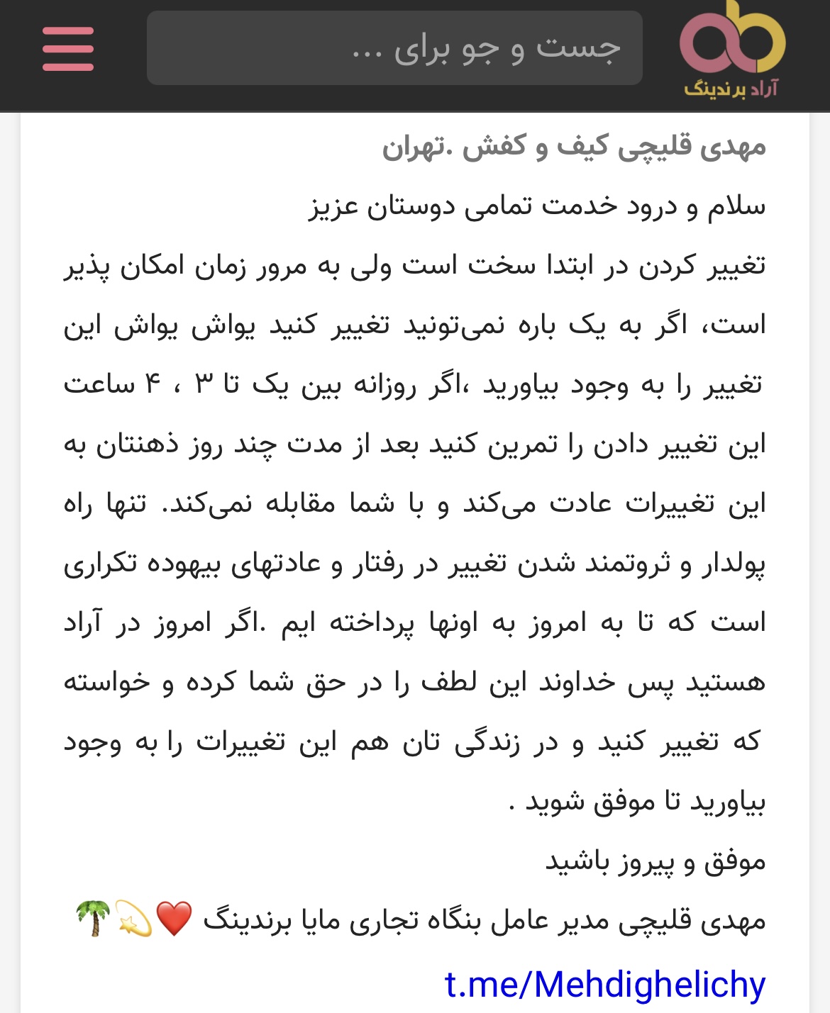 چقدر زیبا نوشتی سجاد که مهمترین اتفاق زندگی ام تغییر ذهنیت و نگاه بوده است.