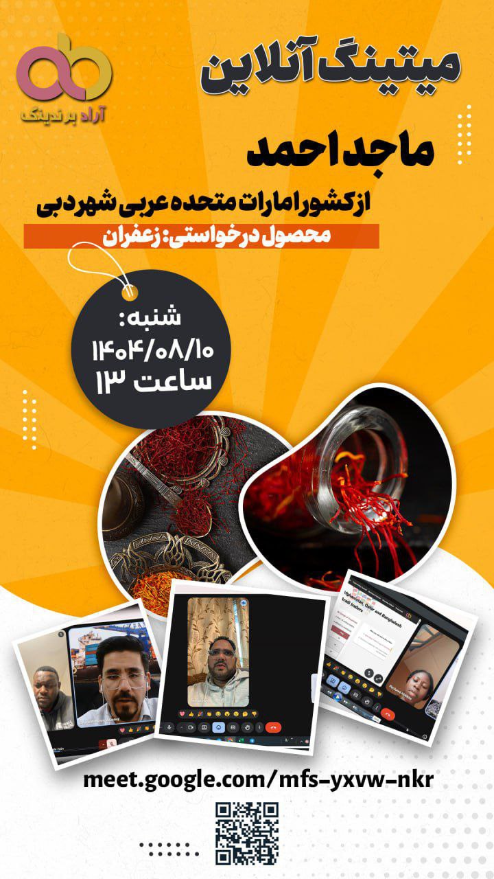 ۲. میتینگ آنلاین با تاجر اماراتی آقای ماجد احمد