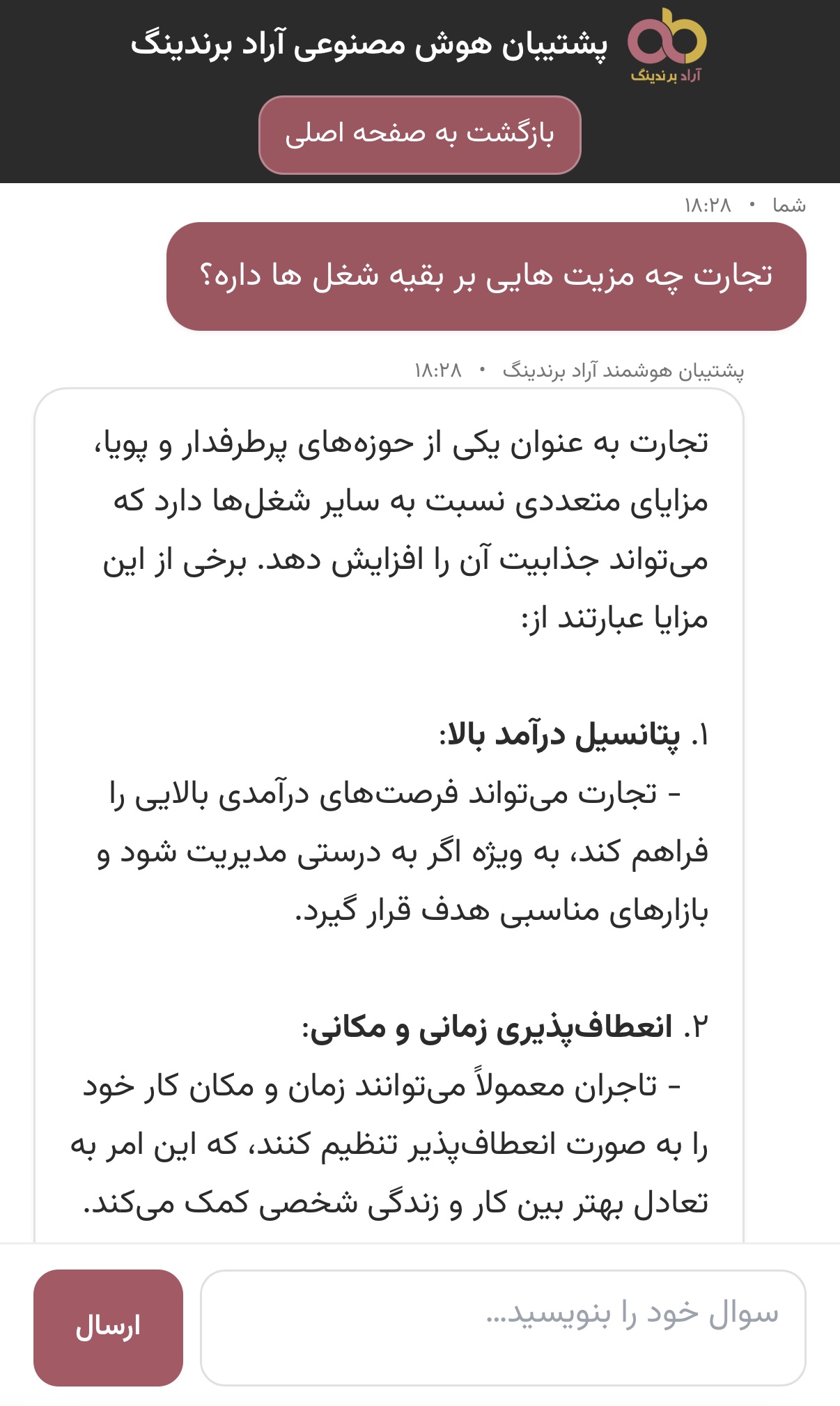 این تحول نشاندهنده آن است که آراد برندینگ همچنان بر اصول اساسی خود پایبند است: همراهی با تاجر، آموزش مستمر و فراهمسازی ابزارهای نوین برای موفقیت در تجارت.