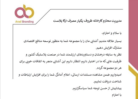 در ادامه با استفاده از سربرگ رسمی آراد برندینگ، نامه هایی در زبانهای مختلفی که نیاز دارید برای شما تدارک دیده می شود.