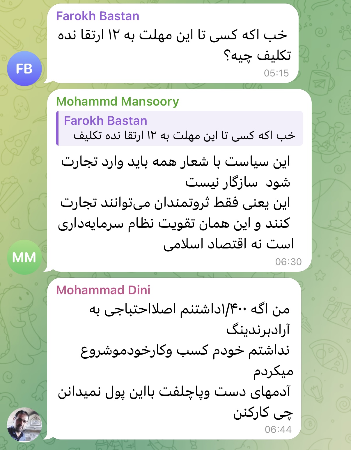 شما ی عکس پروفایل و بایو رو درست کن اقتصاد اسلامی رو رها کن همین مونده که اسلام با شما قرار باشه اقتصادش درست شه. آدم میخاد سرشو به دیوار بکوبه از اینهمه زبون دراز و عمل هیچ.