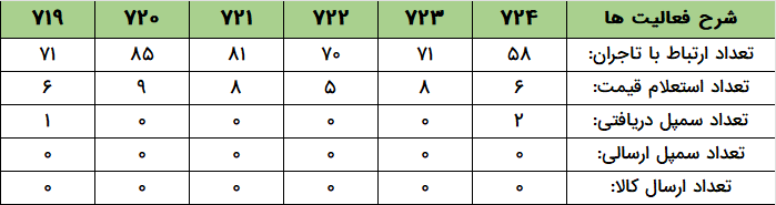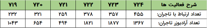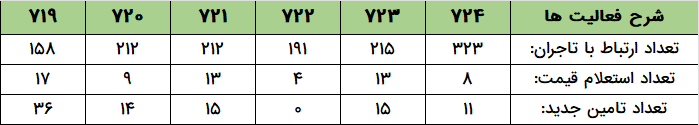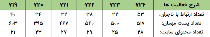 - واحد محتوا با درج ۳۰۲۲ پست در سایت تجارتخانه و نیز ۶۹۴ محتوا در سایتهای شخصی تاجران، هفته پرباری را در پیش داشت.