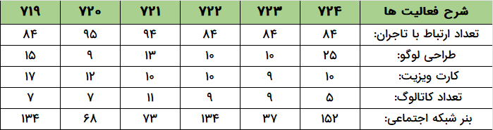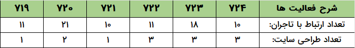 - واحد طراحی سایت تعداد ۱۳ سایت را برای طراحی و تحویل به تاجران در دستور کار خود قرار داد.